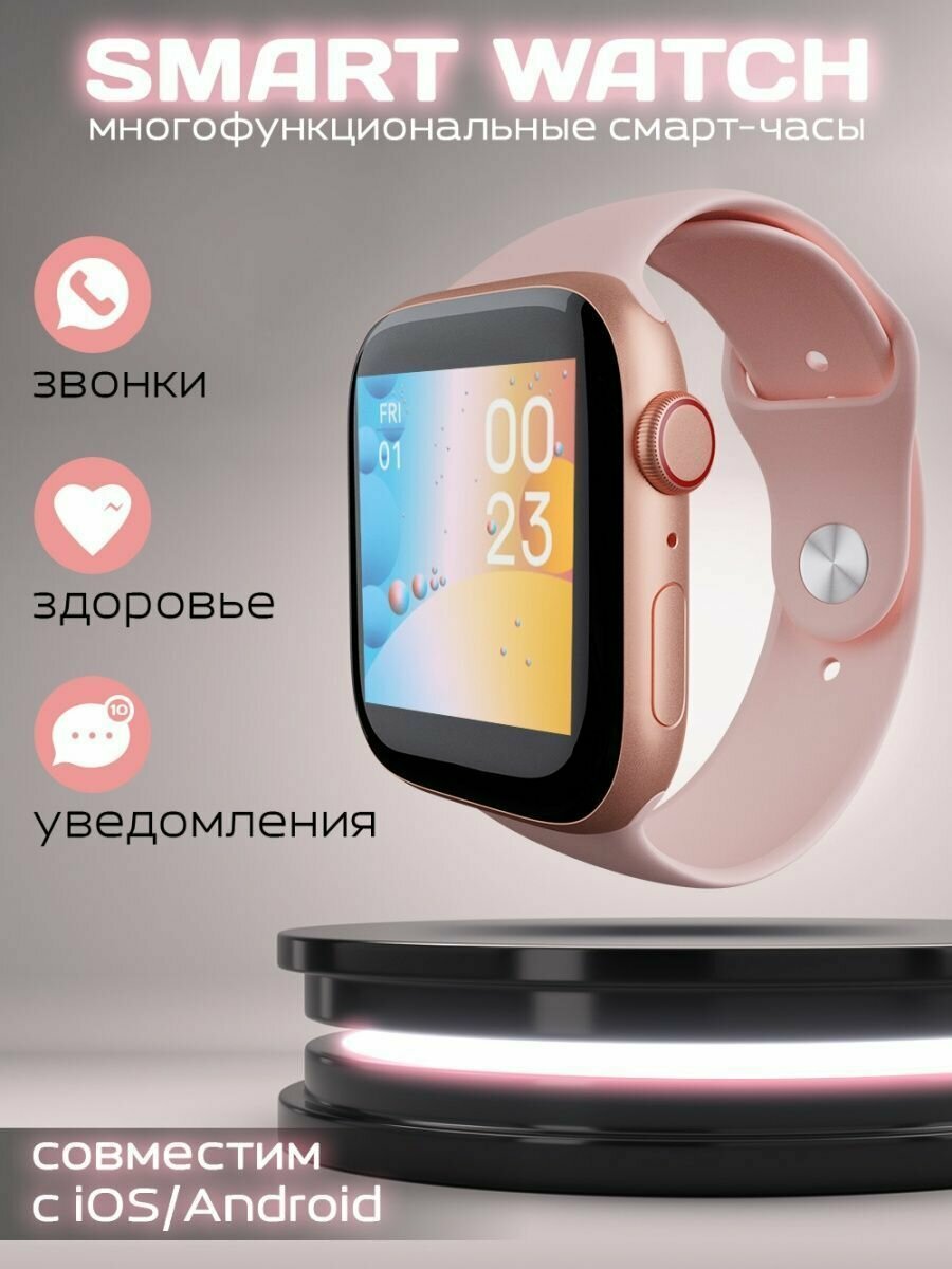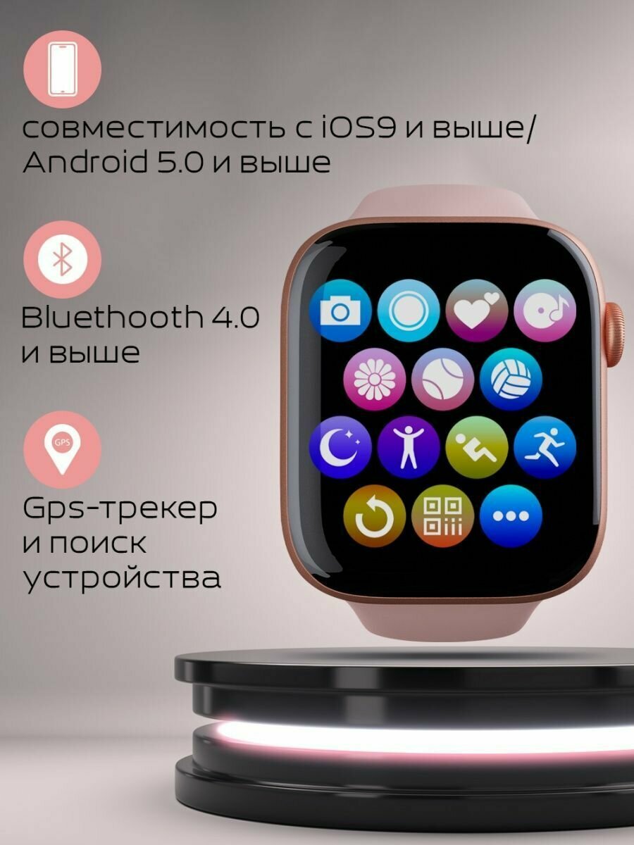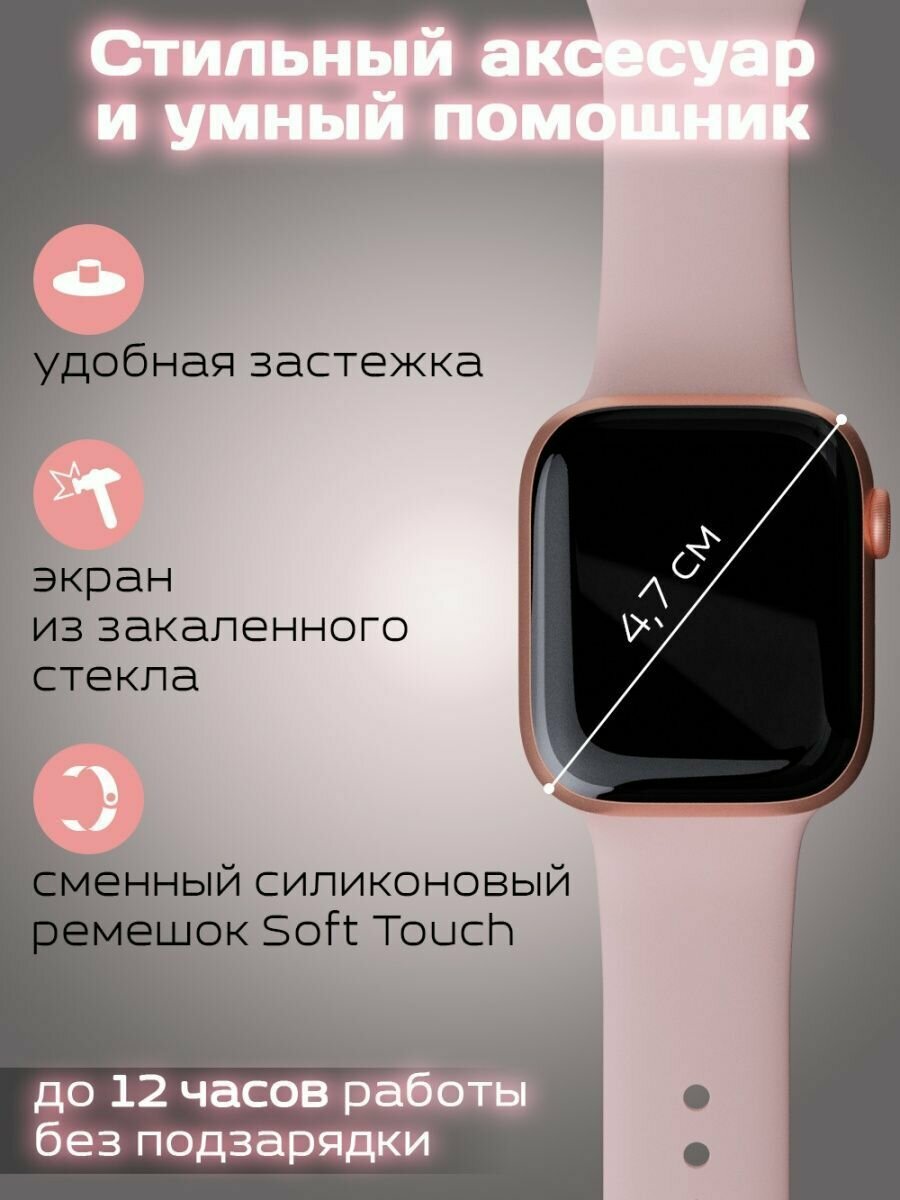 Умные часы 8 серии i8 Pro max; Smart Watch 8 Series Bluetooth (блютуз); Смарт часы мужские, женские, детские, 44 mm, розовые интересное: