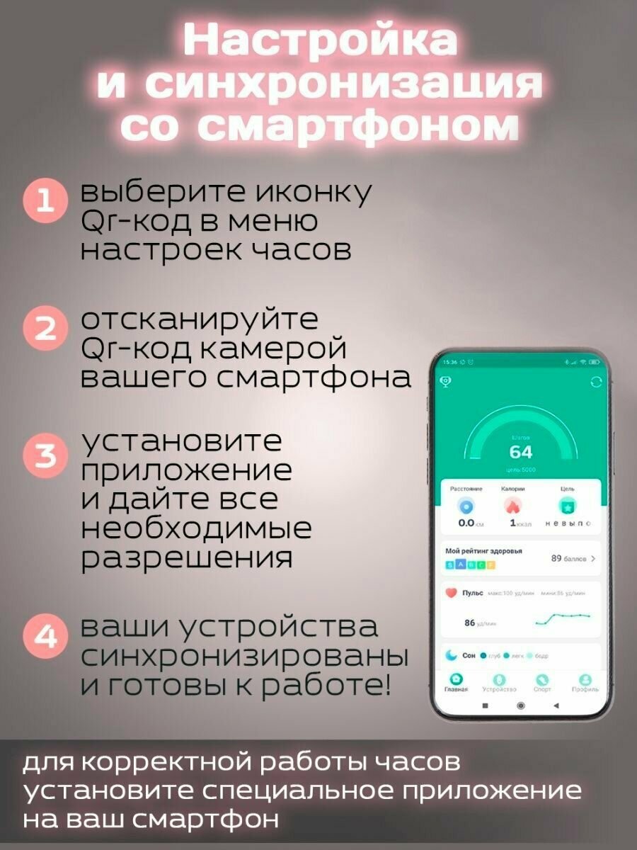 | Мониторинг | водный баланс, сна, уровня стресса, физической активности, Сердечного ритма, Усвоения калорий |