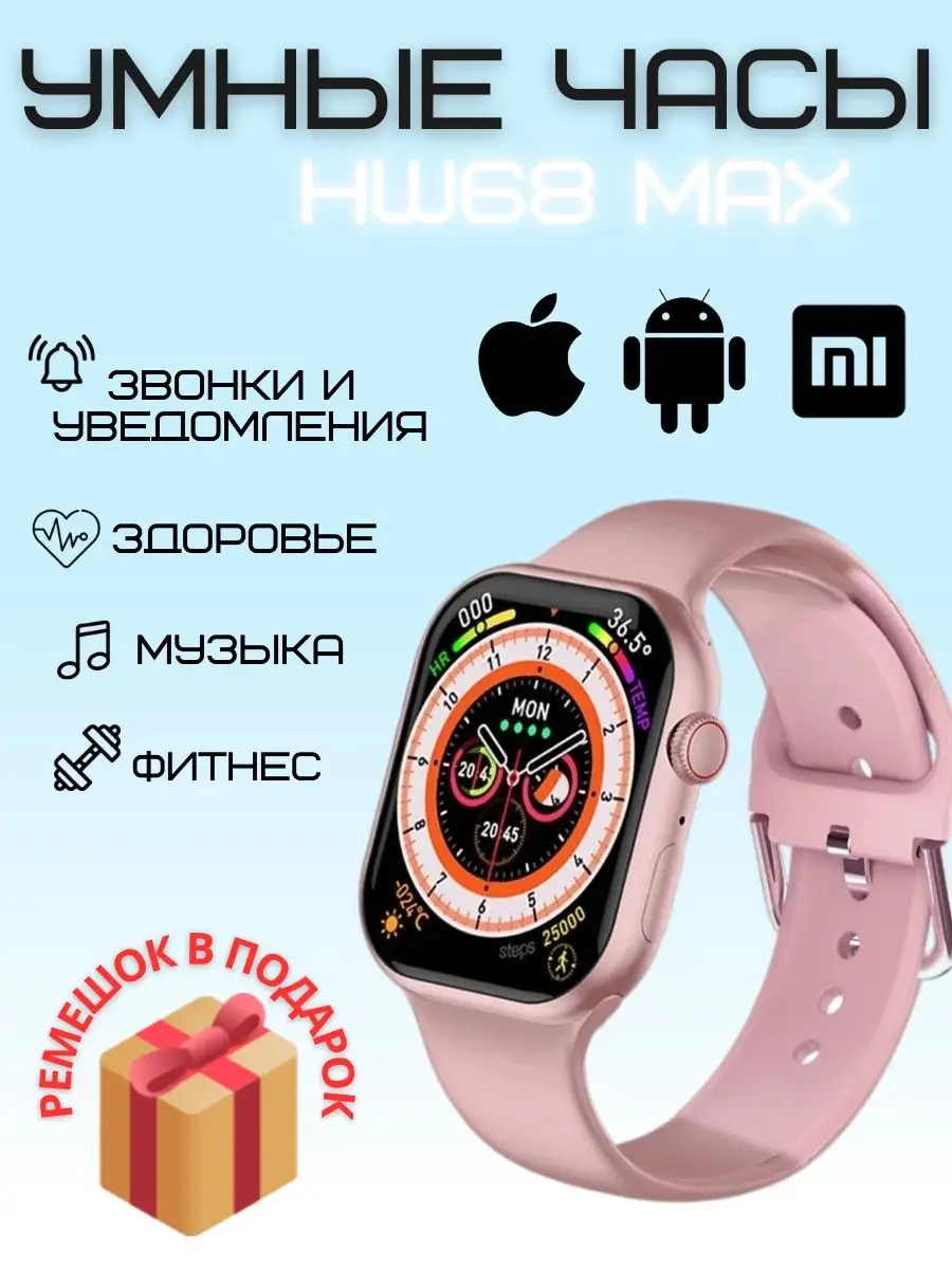 Умные часы smart watch HW68 MAX наручные, розовый интересное: