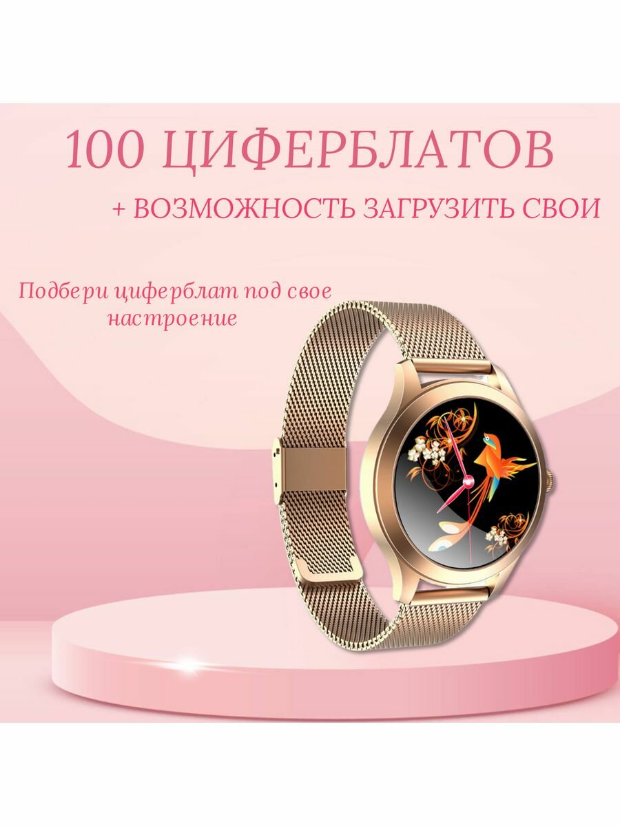 СохранитьУмные часы женские, браслет с металлическим ремешком iOS,Android,Bluetooth звонки, золото интересное: