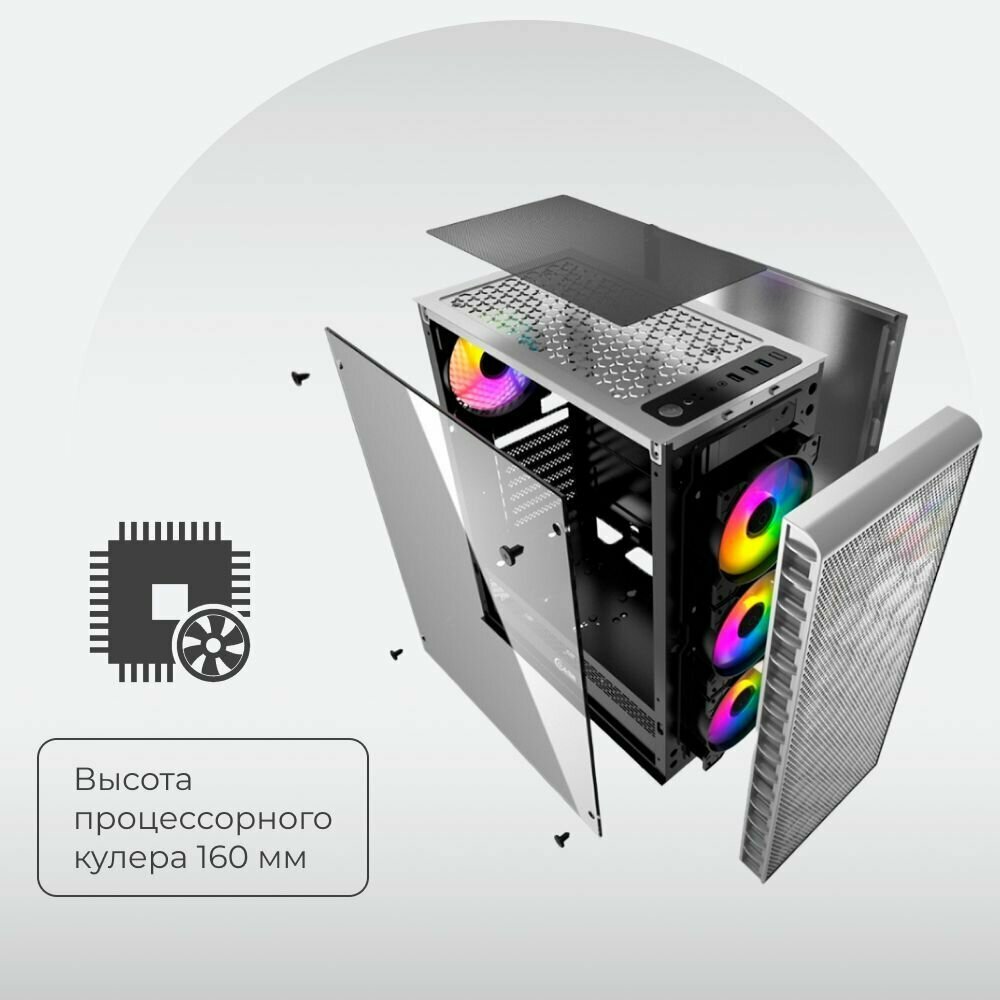 Powercase CMIZ4CW-L4 Корпус Mistral Z4 С White, Tempered Glass, Mesh, 4x 120mm 5-color LED fan, белый, ATX (CMIZ4CW-L4)
