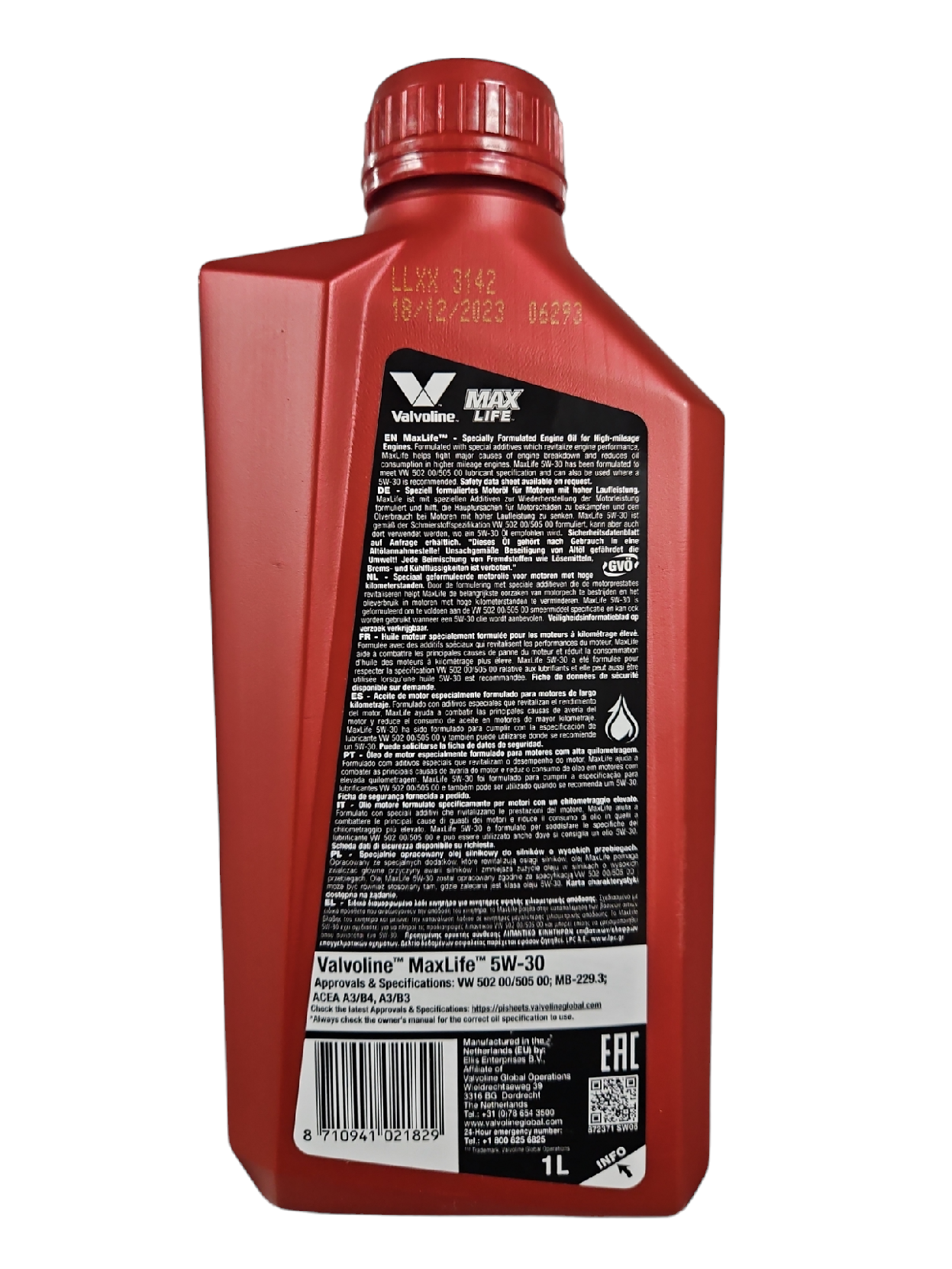 Ниже Вы можете прочитать отзывы на Масло моторное Valvoline MAXLIFE 5W-30 1L (арт. 872371) VAL-5W30ML-1L, ознакомится с подробными характеристиками, посмотреть интересные обзоры и фотографии на Масло моторное Valvoline MAXLIFE 5W-30 1L (арт. 872371) VAL-5W30ML-1L.