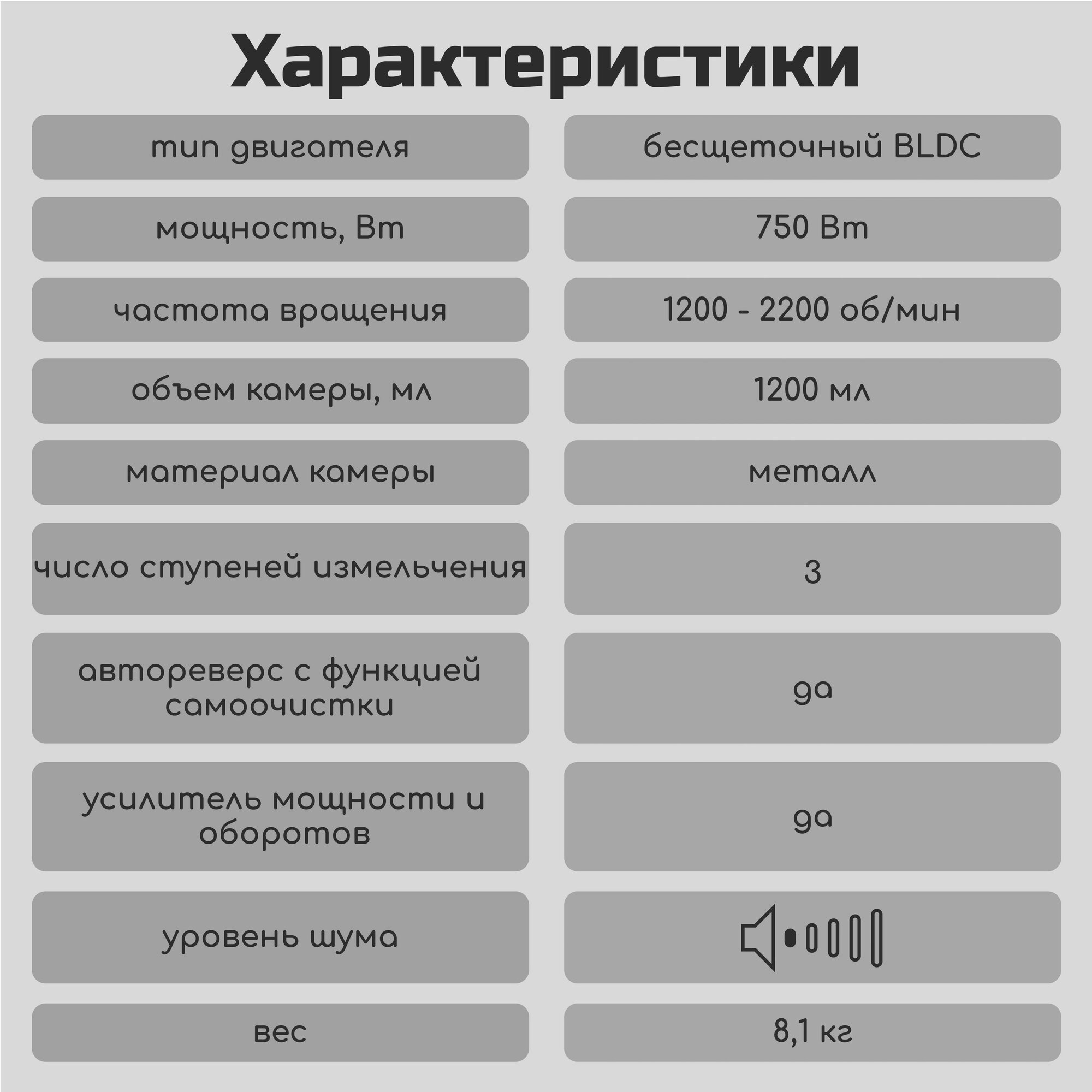 | Объем перемалывающей камеры | 1 л |