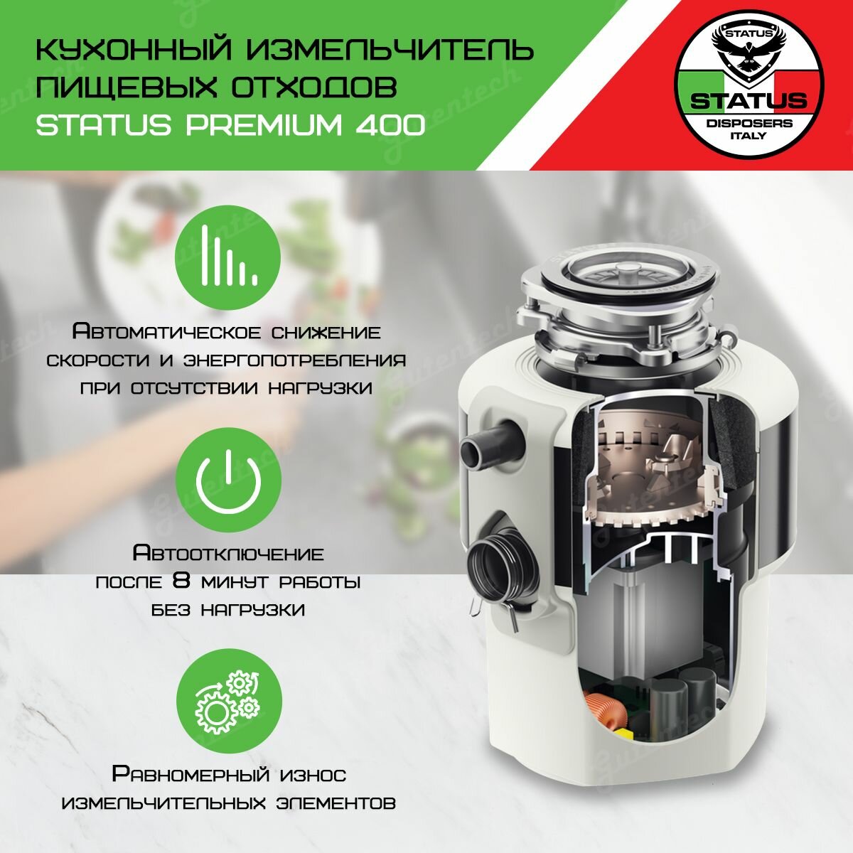 СохранитьИзмельчитель пищевых отходов Status Italia S.r.l. PREMIUM 400 09810502 интересное: