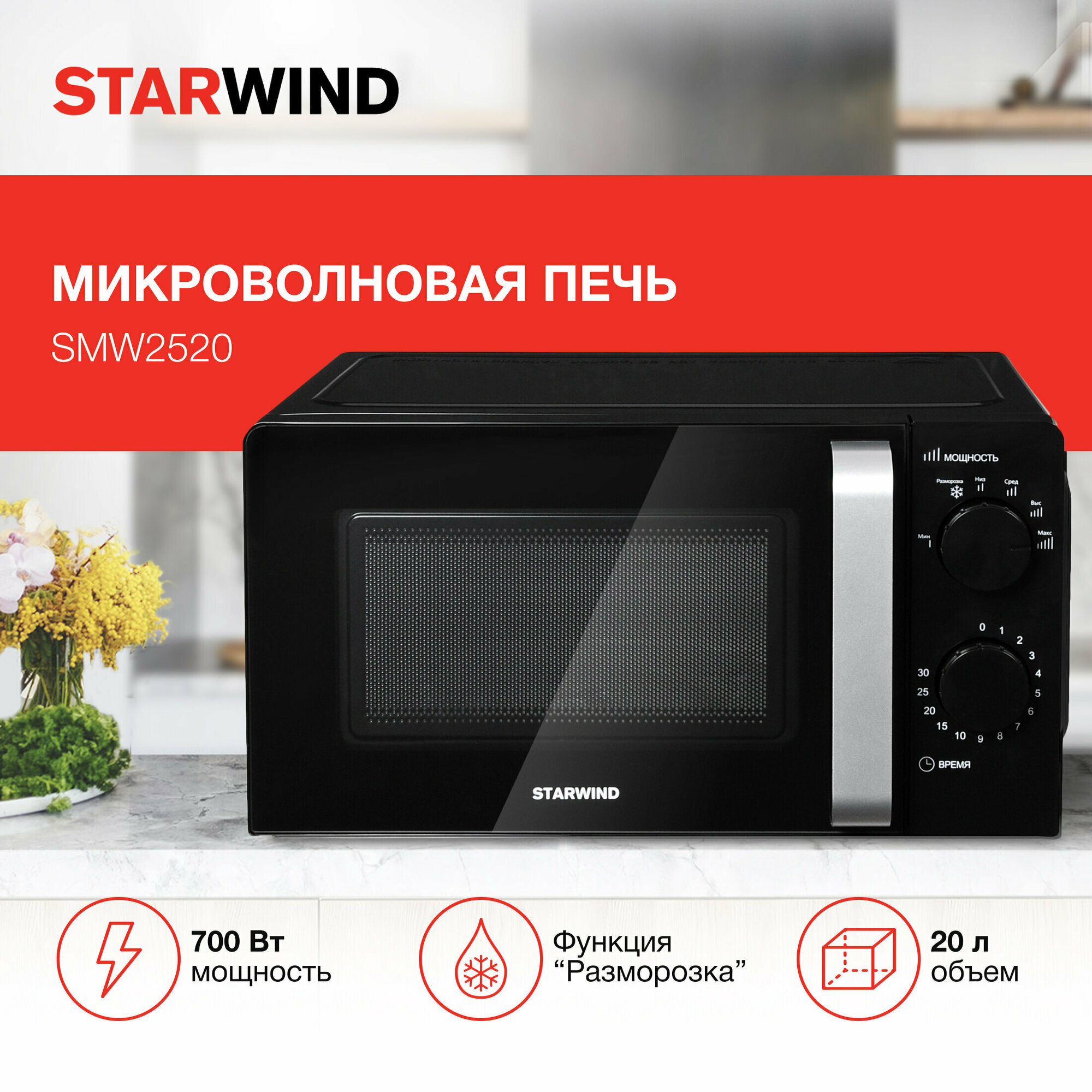 Купить Микроволновая печь (СВЧ) Starwind SMW2520 черный/серебристый, мощность 700Вт, объем 20л, механическое управление