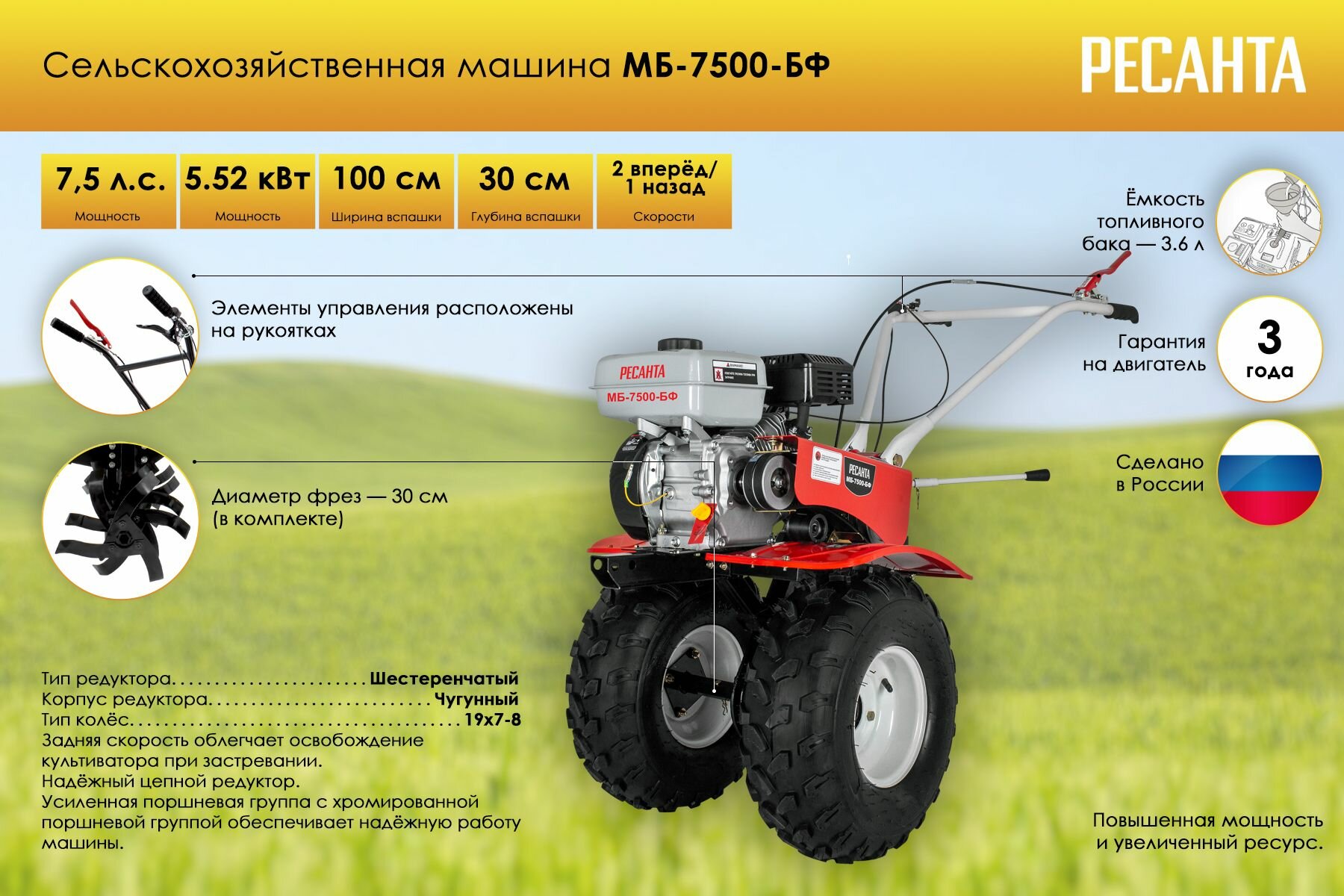 Мотоблок бензиновый Ресанта МБ-7500-БФ интересное: