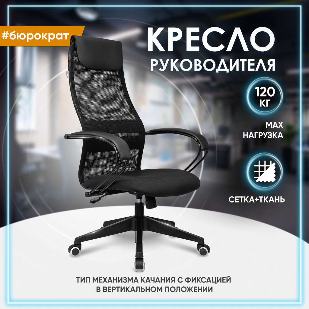 Кресло руководителя Бюрократ CH-608/BLACK, PL, спинка сетка черный, сиденье черный (1141494)