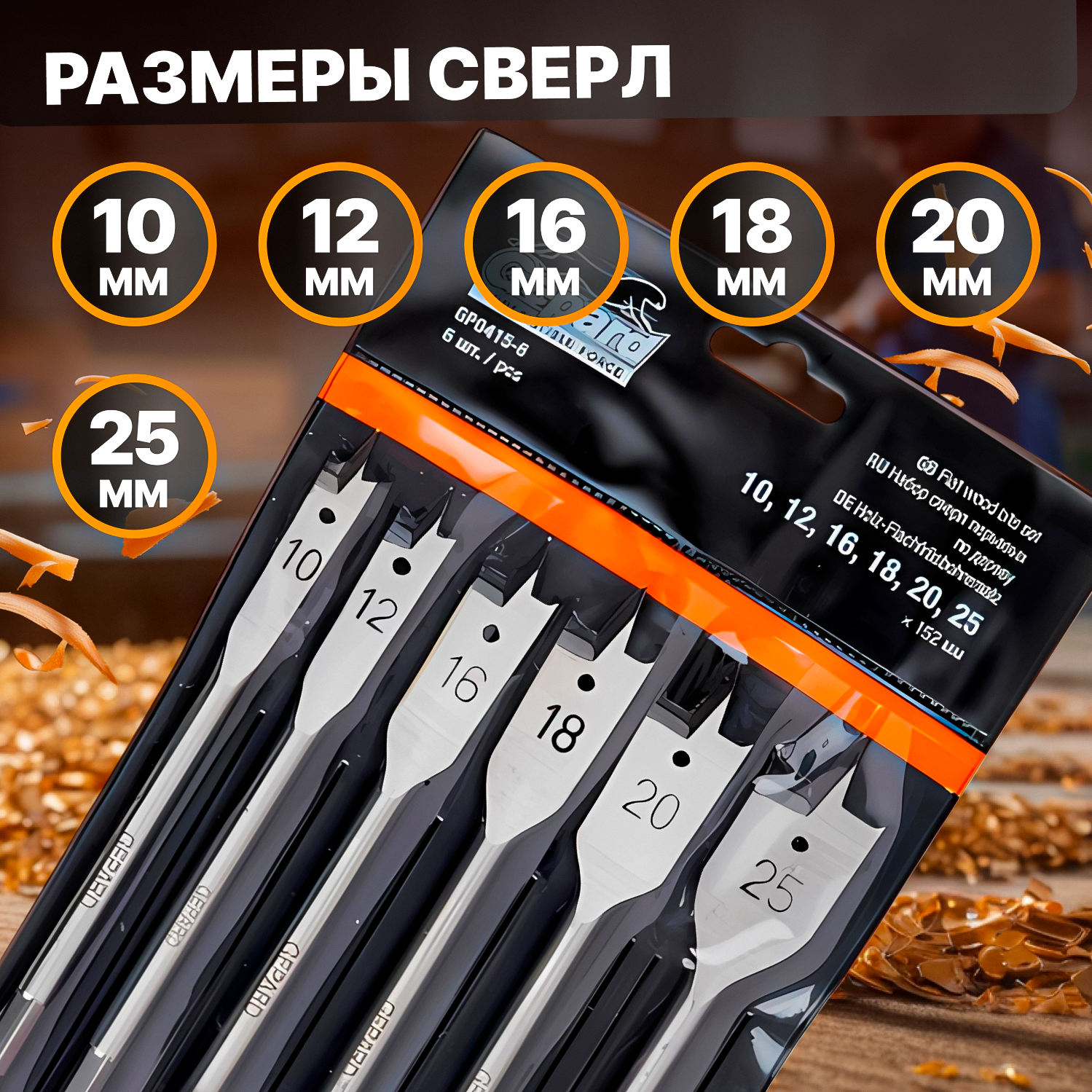 СохранитьНабор сверл перьевых по дереву 6 шт. GEPARD (GP0415-6) (Impact, перовое) интересное: