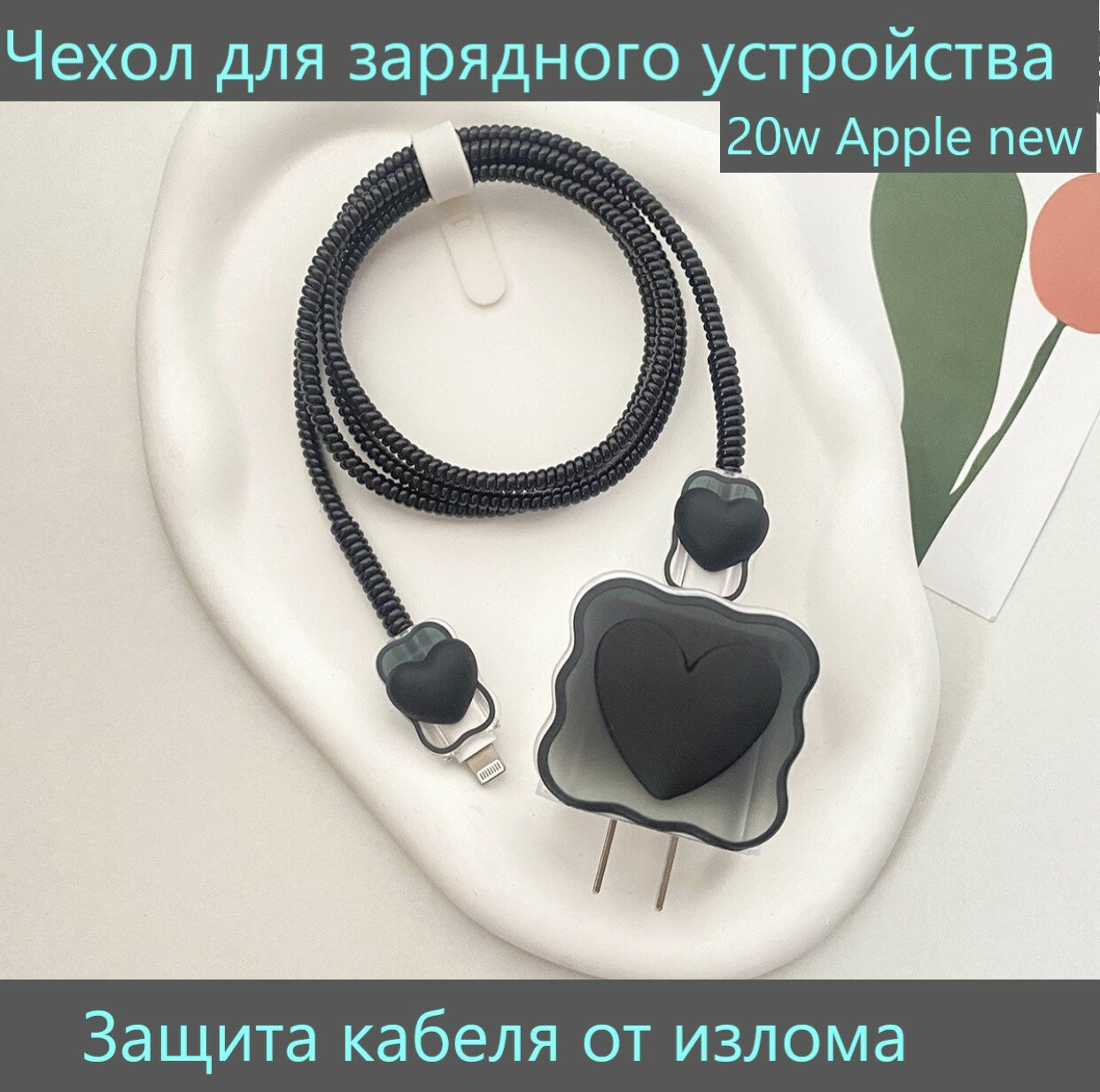Купить Защитный чехол для зарядки 20W / защита провода от излома /обмотка для кабеля (провода) USB зарядки, черн. сердц. Комплект