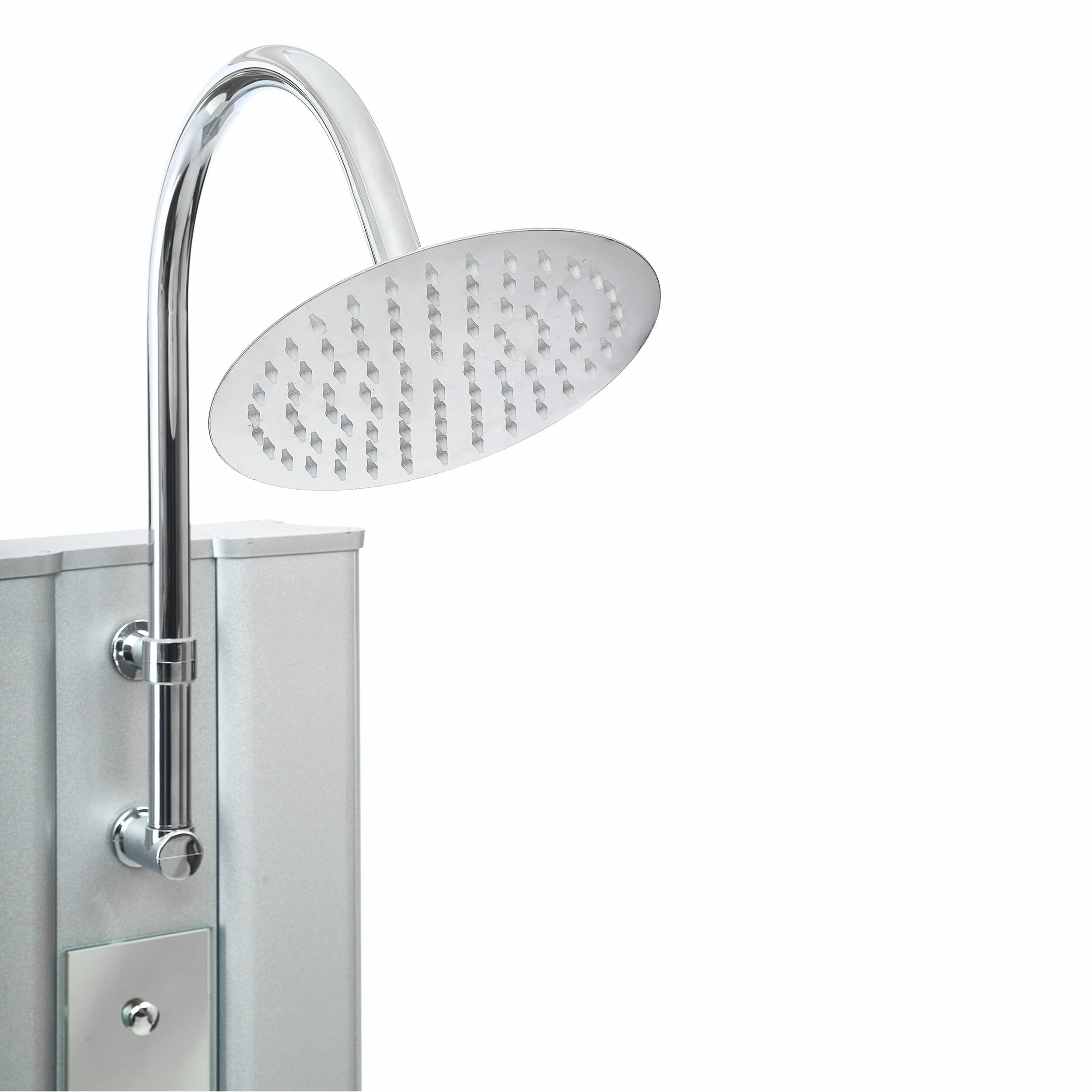 | Отзыв: | Муж поставил такую душевую панель в дачном доме. Мне понравился дизайн "хай-тек" (а может, "техно"-не знаю точно) и функционал. Напор воды и температура регулируются удобным рычажком. На полочке размещается все самое необходимое. Порадовало небольшое, но совсем не лишнее зеркало. Гидромассаж в конце дня на даче, просто "кусочек" счастья. Протираю сухой тряпочкой, и панель опять сияет новизной. |