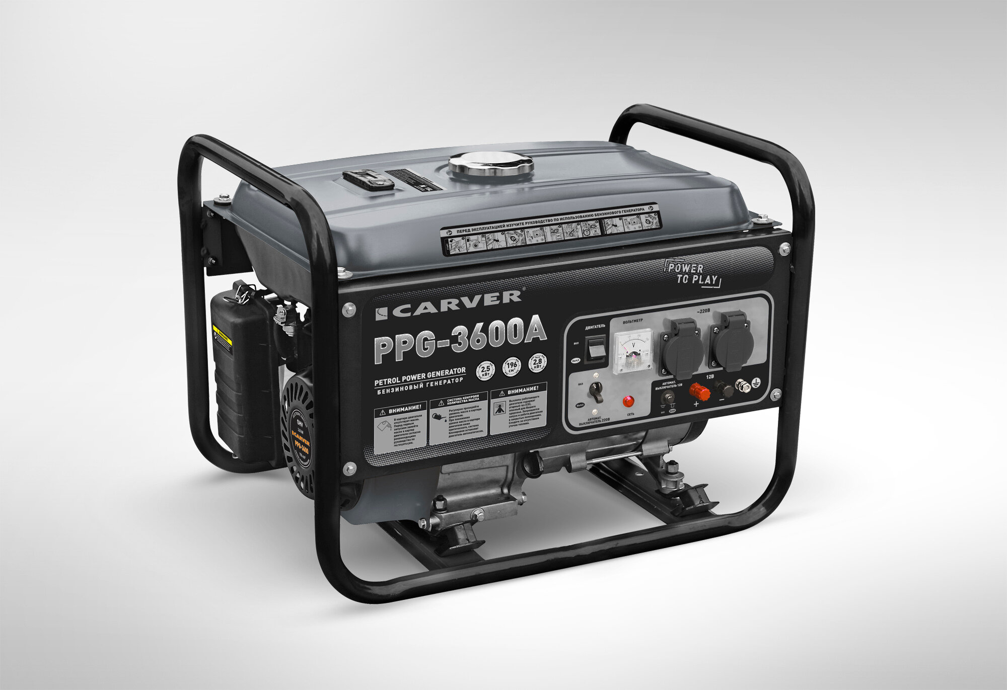 Бензиновый генератор CARVER PPG- 3600А, 220/12 В, 2.8кВт [01.020.00011]