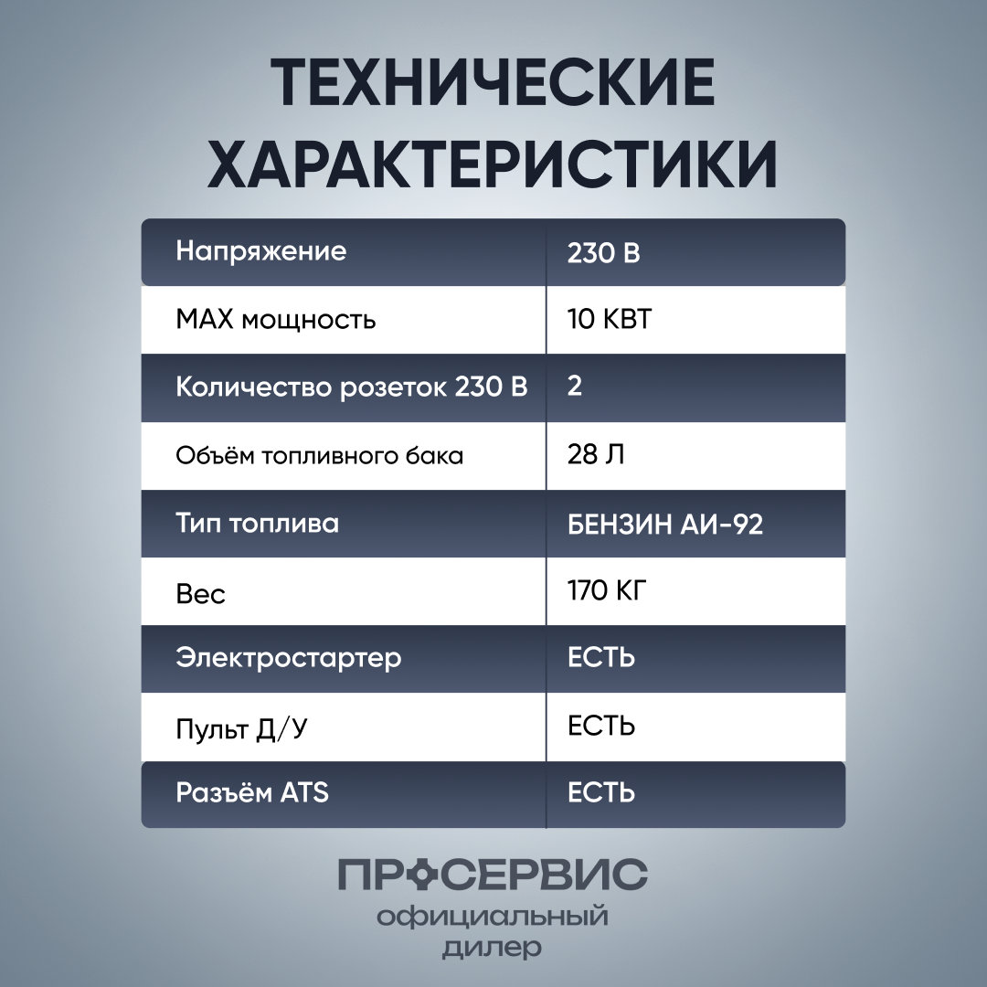 | Минусы: | Очень шумный!!! Значительно шумнее заявленных характеристик! 2 выхлопных патрубка (т.е. требуется оборудование 2-х отводов выхлопа). Стоять, как резервный, или храниться, как мобильный, должен только в отапливаемом помещении, у меня стоял на улице под навесом (без прямого доступа влаги) с блоком АТС, от сырости накрылась вся электроника. |