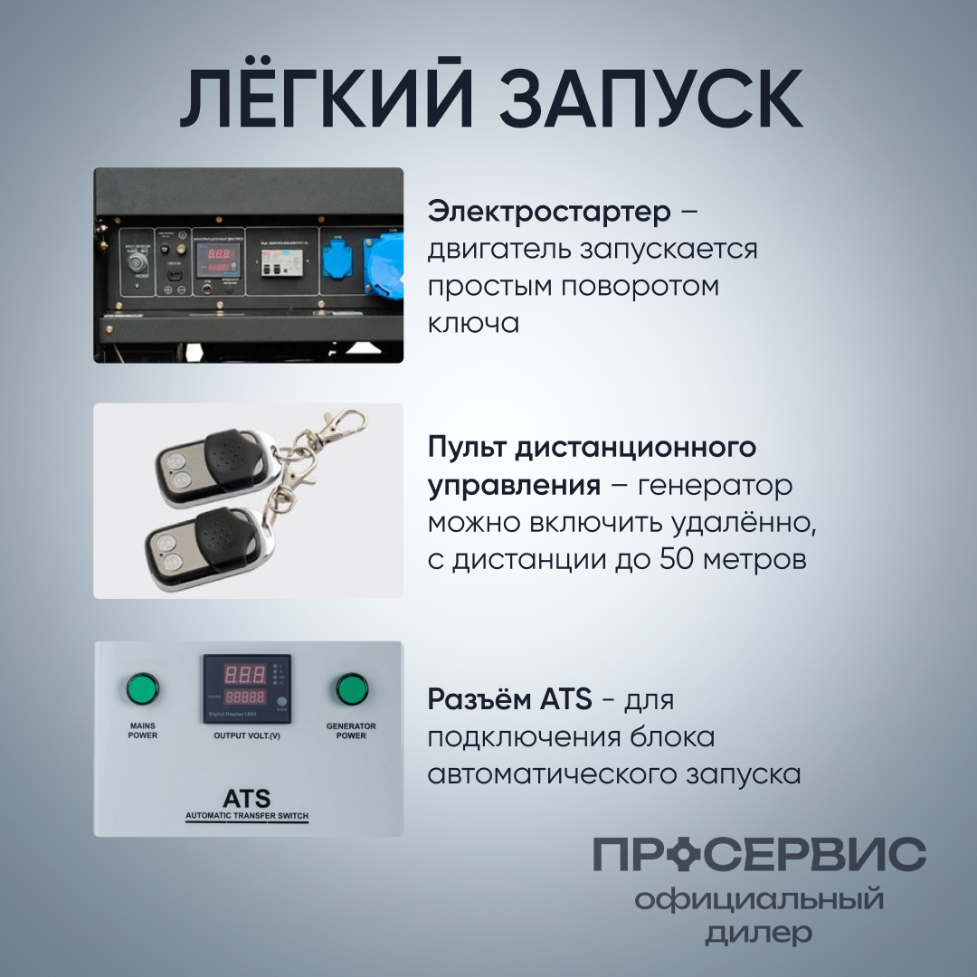 | Запуск | электрический / ручной / автоматический |