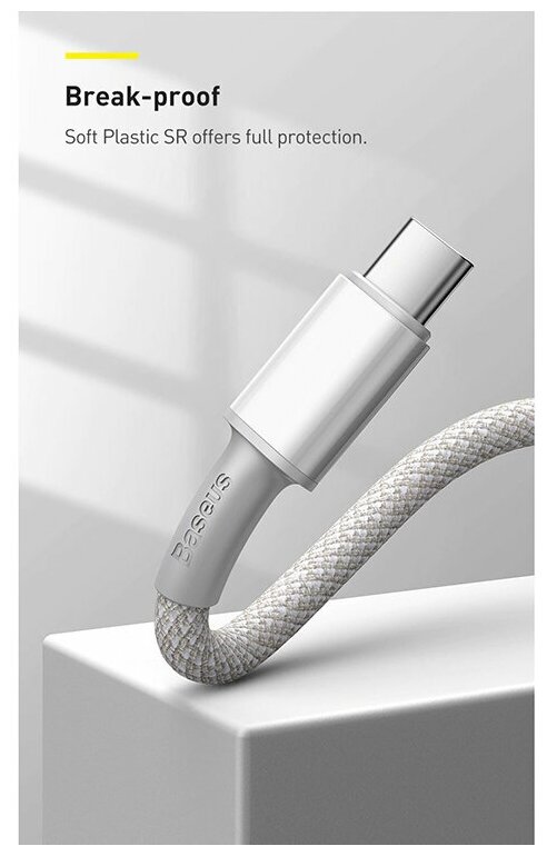 Кабель USB-C BASEUS High Density Braided, Type-C - Type-C, 5A, 1 м, белый