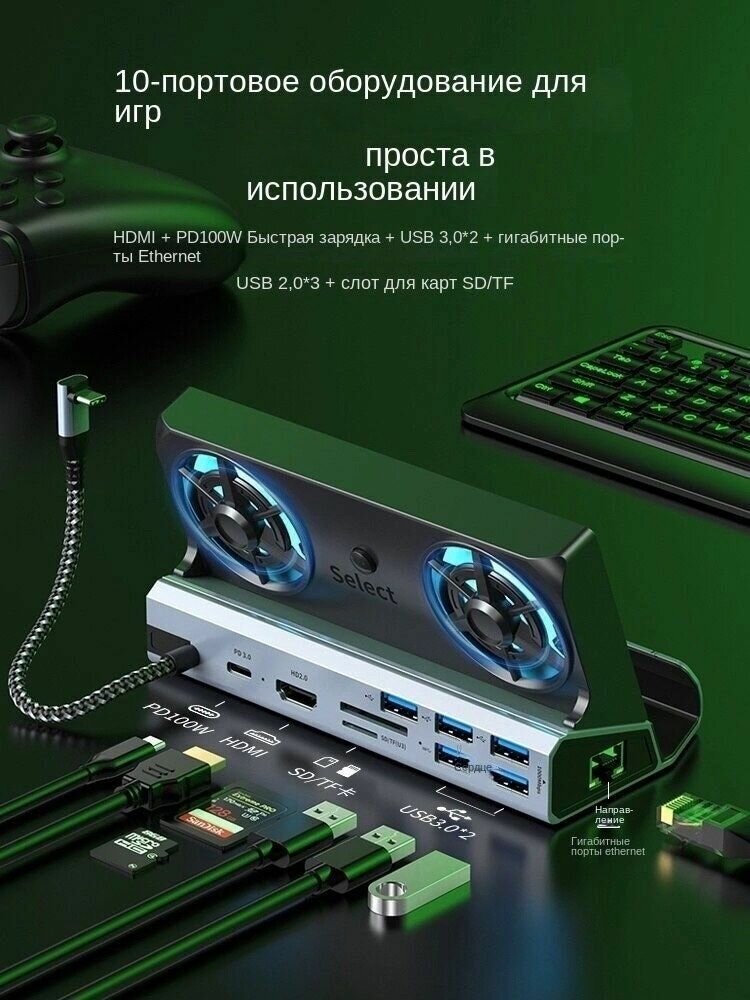 Док-станция Steam Deck с RGB подсветкой Охлаждающий вентилятор Зарядная база USB HDMI HD 4K60HZ 10 в 1 интересное: