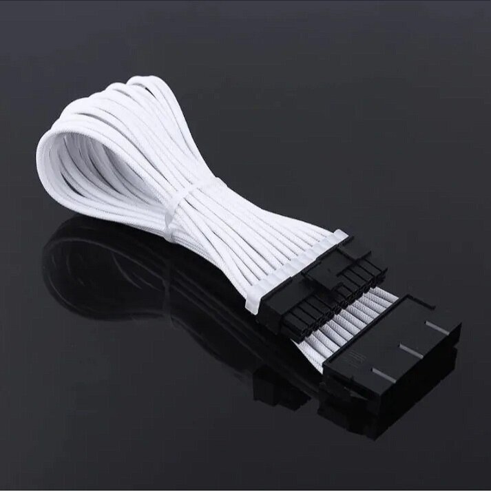 Кабели для моддинга, удлинитель блока питания ПК, цвет белый, 4 кабеля (черные коннекторы)