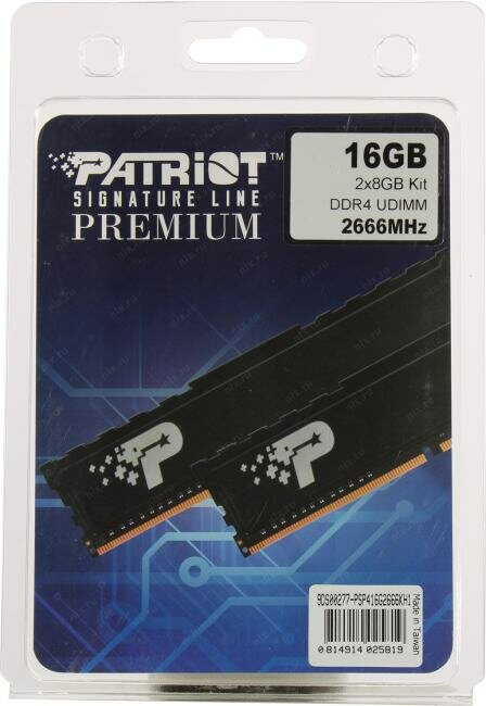 Patriot DDR4 16Gb (2x8Gb) DDR4 2666MHz pc-21330 Signature Line Premium CL19 (psp416g2666kh1) .