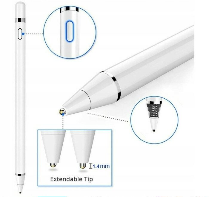Стилус/ перо для рисования для емкостных сенсорных экранов/ iOS, Android/ Мобильный телефон/ Планшет/ Перезаряжаемый/ White интересное: