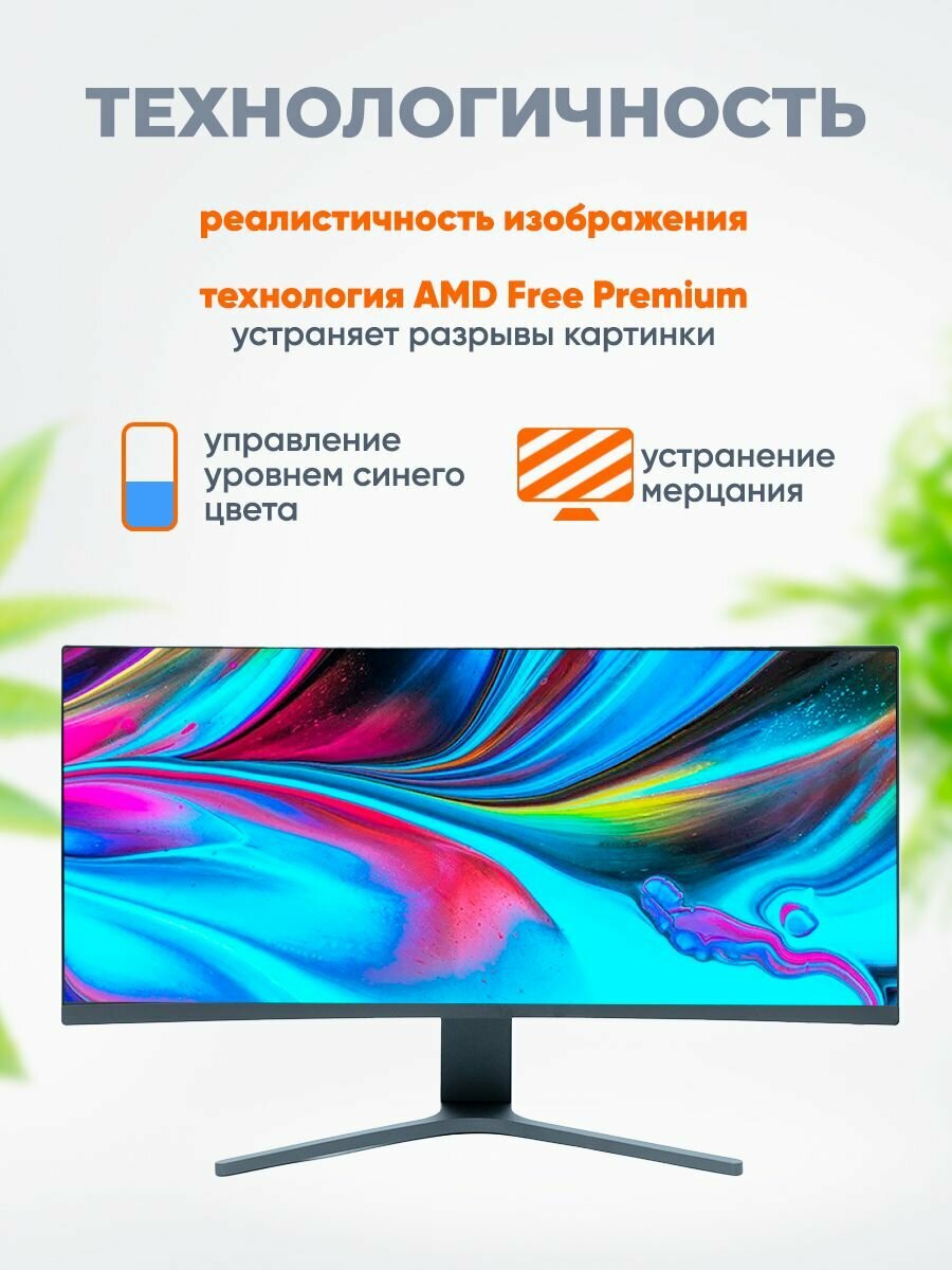 30" Монитор Xiaomi Curved Gaming Monitor 30, 2560x1080, 200 Гц, *VA, CN, черный интересное: