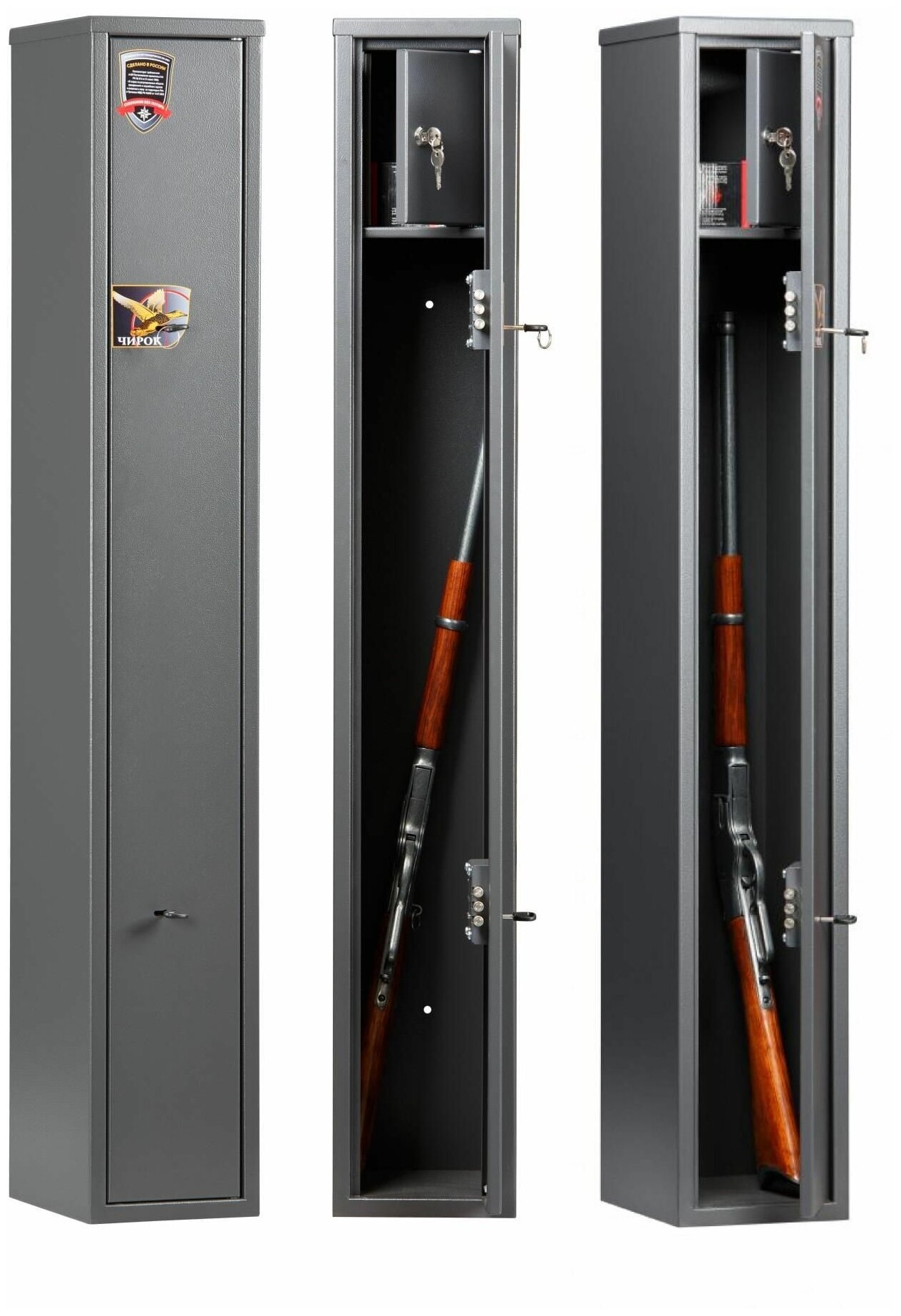 Сейф оружейный Aiko Чирок 1325 на 2 ствола, максимальная высота ружья 1300 мм, два ключевых замка, с отделением для патронов, ВхШхГ: 1330х200х250 мм интересное: