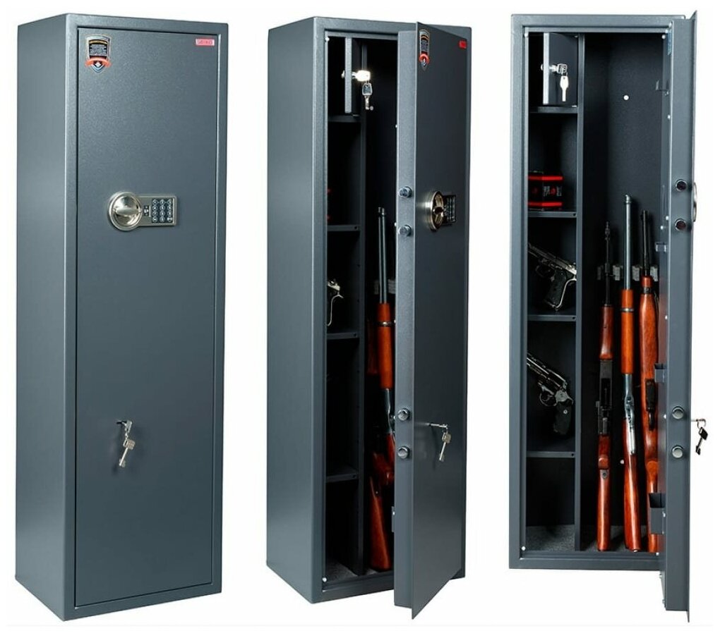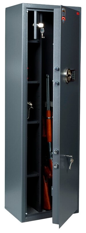 Сейф оружейный Aiko Филин 33 EL на 3 ствола, высота ружья 1384 мм, кодовый и ключевой замки, с трейзером, ВхШхГ: 1435x445x335 мм, толщина стенки 3мм. интересное: