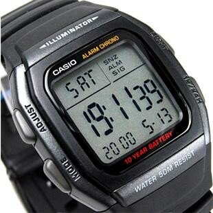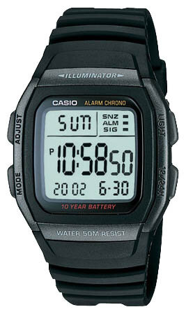 Наручные часы CASIO мужские Collection W-96H-1B кварцевые, будильник, секундомер, водонепроницаемые, подсветка дисплеячерный, серый интересное: