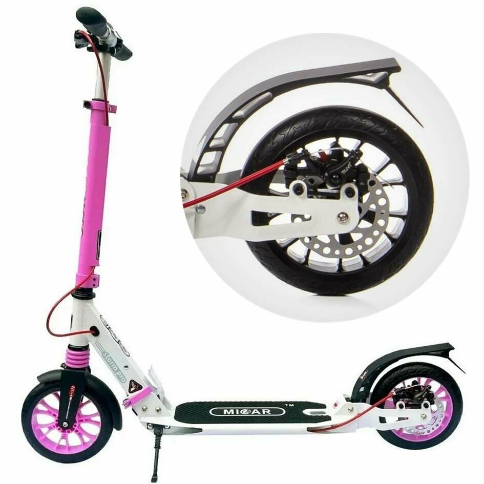 Купить Городской самокат Micar Storm Pro 2023 с ручным дисковым тормозом и амортизаторами Бело-розовый