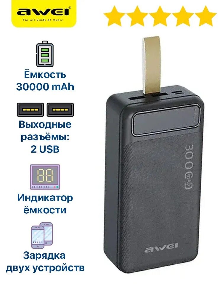 Внешний аккумулятор повербанк Power bank Awei P7K 30000mAh черный интересное: