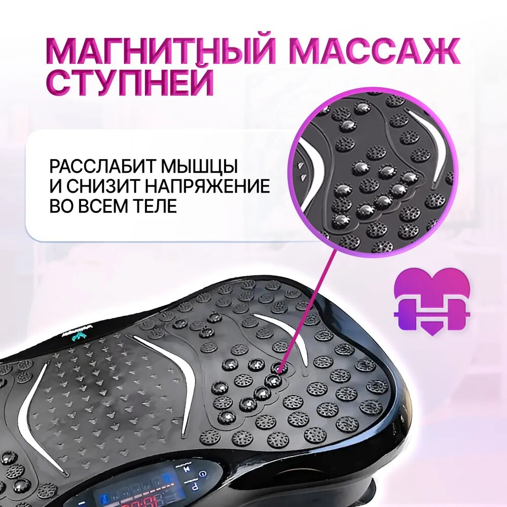 Виброплатформа для похудения до 150кг, Виброплатформа Wellinger, массажер для ног, 99 скоростей, эспандеры 2 шт, чёрная