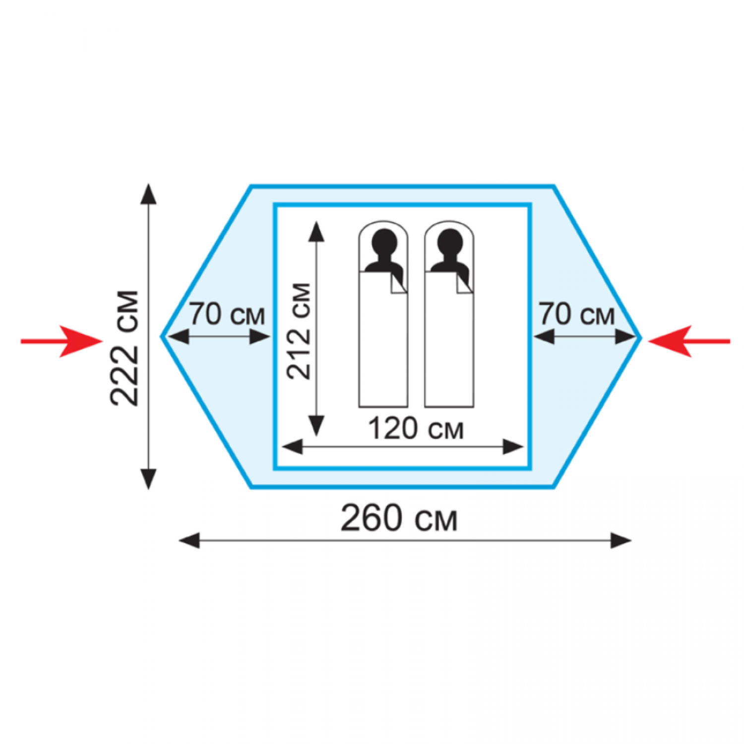 | Размеры внутренней палатки(ДxШ) | 120x212 cм |