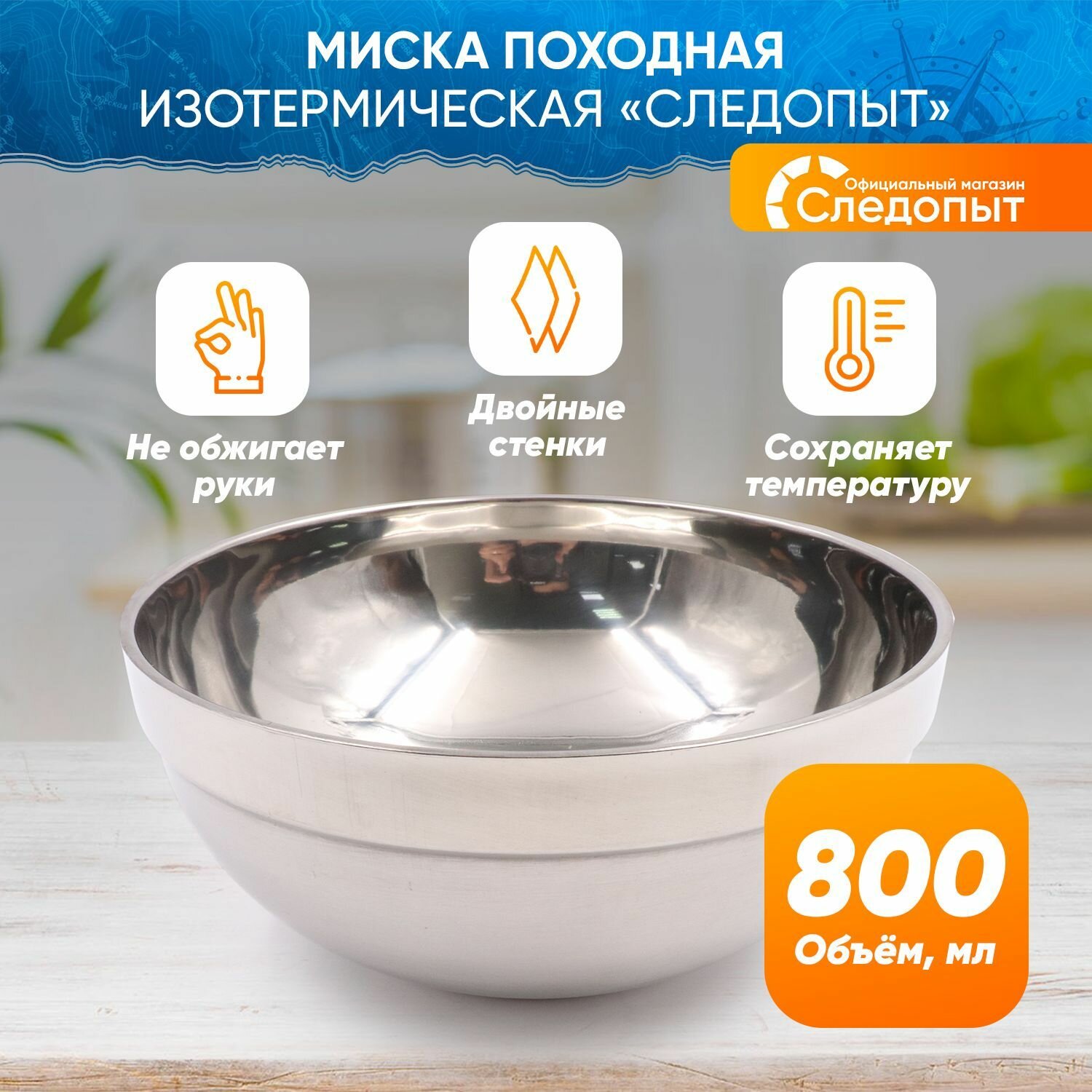 Походная миска Следопыт PF-CWS-P57, 0.8 л, нержавеющая сталь, изотермическая
