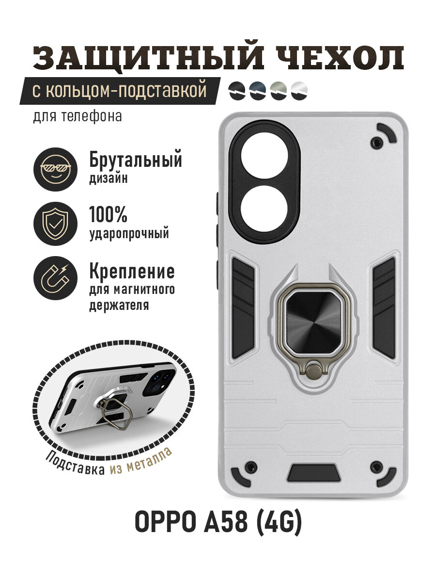 Противоударный чехол с кольцом и креплением для Oppo A58 (4G) / Оппо А58 (4Джи) DF oArmor-05 (silver)