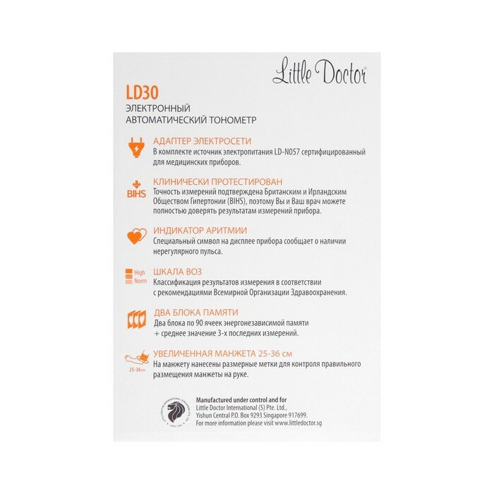 Тонометр Little Doctor LD-30, автоматический, манжета 25-36 см, 4хАА, с адаптером интересное: