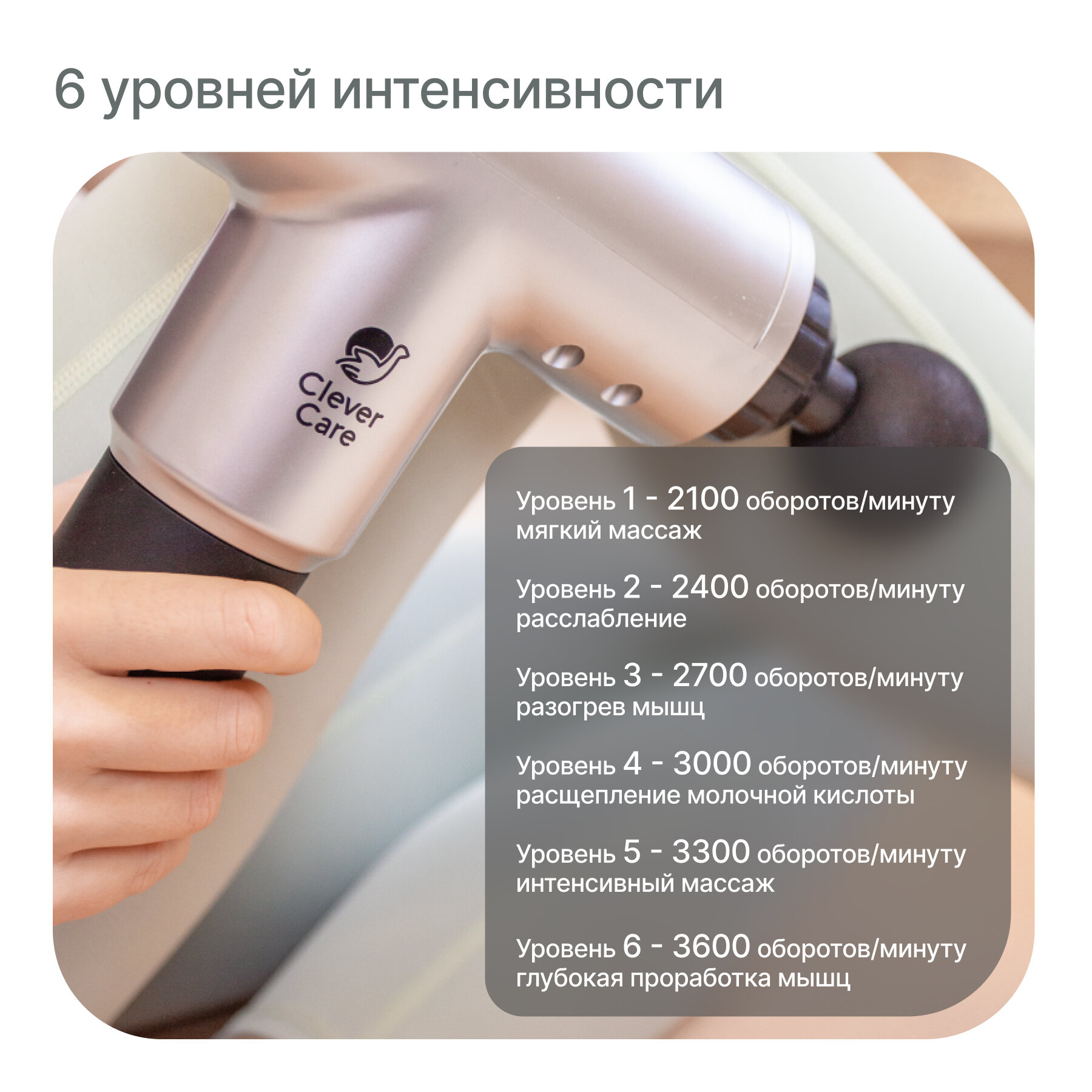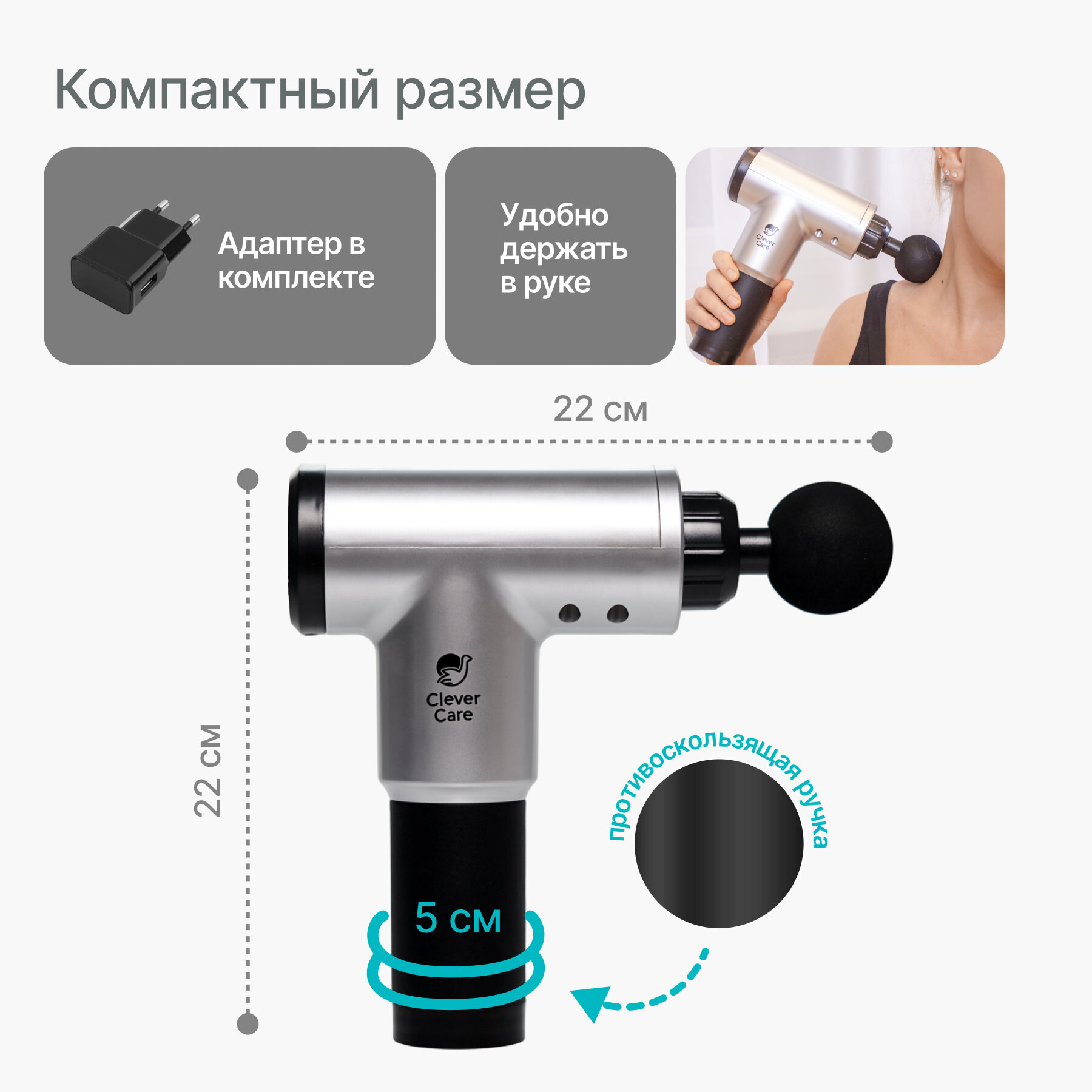 Массажер перкуссионный CleverCare Sport gun, серебристый