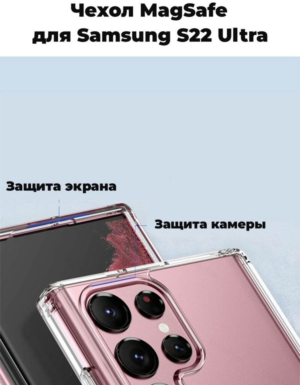 Чехол на Самсунг С22 Ультра Магнит прозрачный для Samsung Galaxy S22 Ultra с MagSafe силиконовый для беспроводной зарядки, защита камеры и экрана интересное: