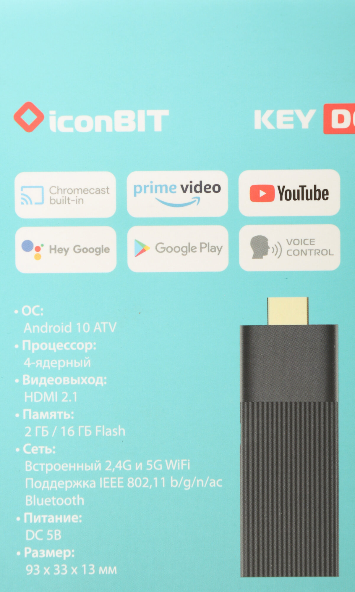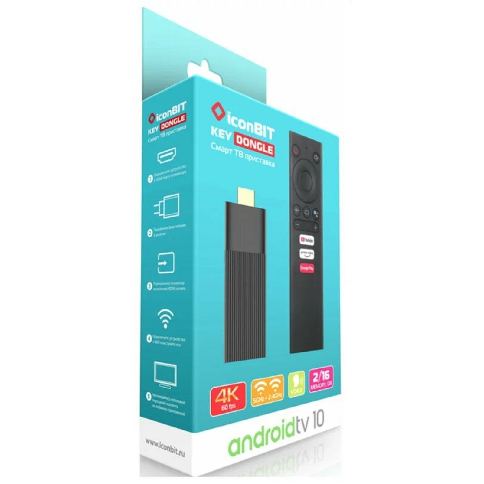 Приставка Смарт ТВ IconBIT Key Dongle,2 ГБ ОЗУ, 16 ГБ,Android, Ultra HD, Wi-Fi, HDMI, чёрная