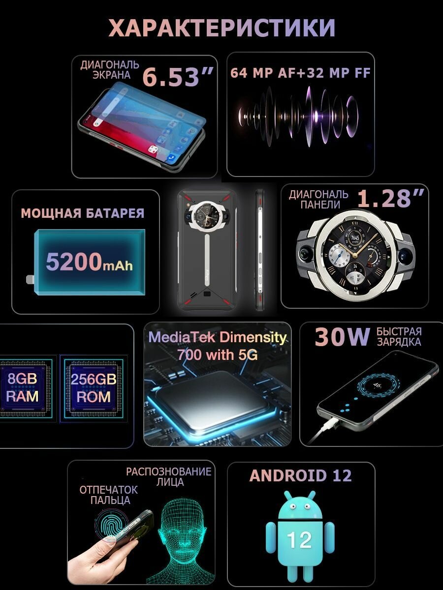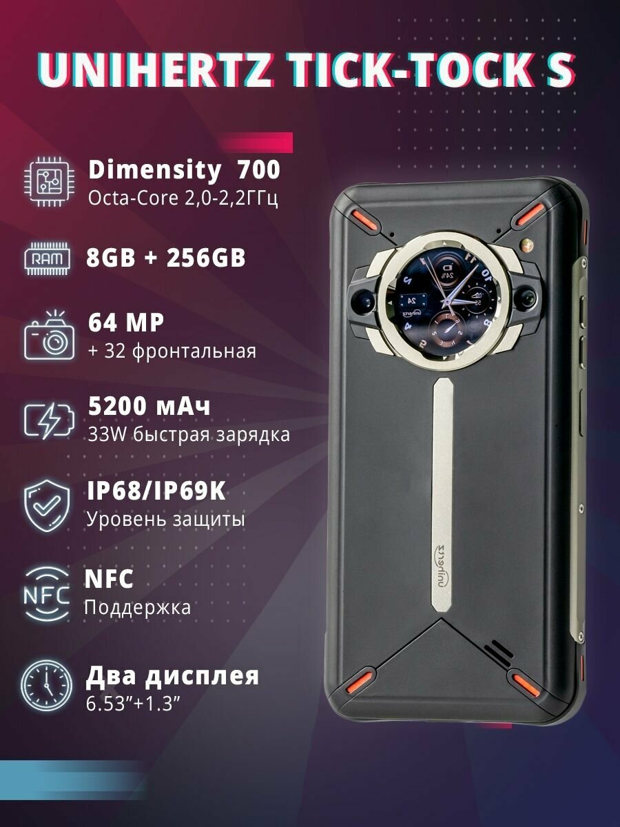 Смартфон Unihertz TickTock-S 8/256 ГБ, 2 nano SIM, черный интересное: