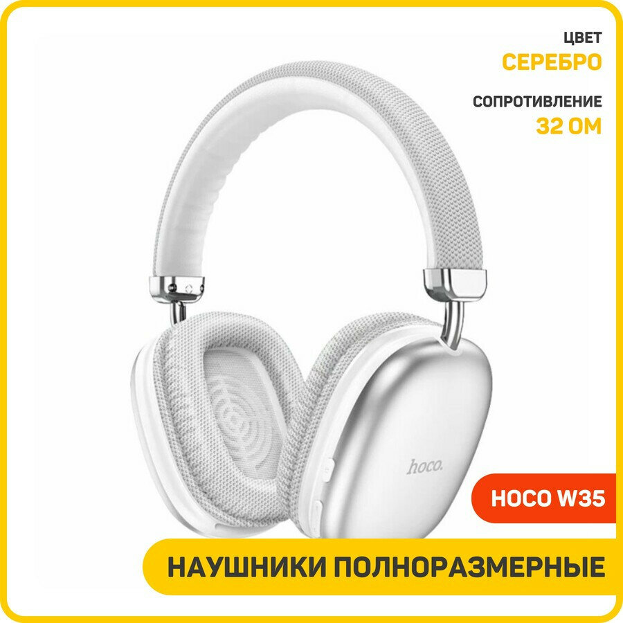 Наушники полноразмерные беспроводные Hoco W35 BT 5.3, 40 часов музыки, цвет Серебристый