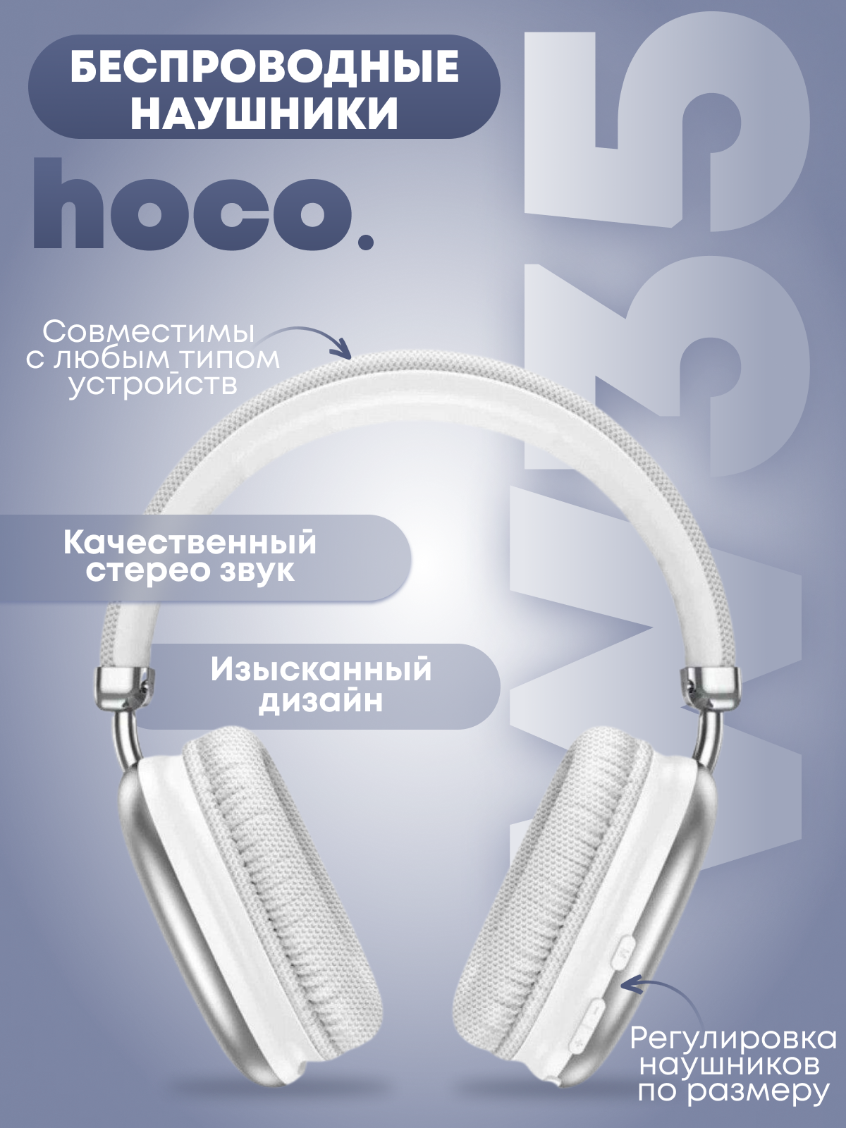 Беспроводные наушники Hoco W35 полноразмерные / Bluetooth / AUX, белый,серебристый