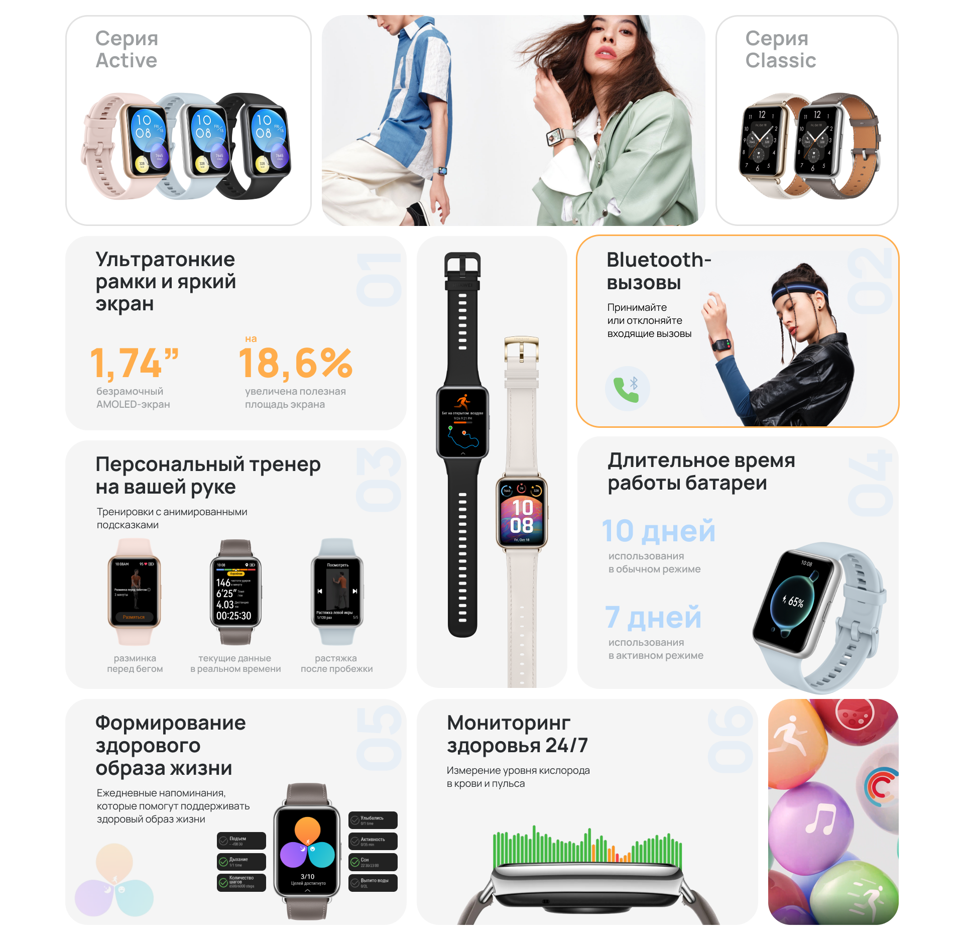 СохранитьУмные часы HUAWEI Watch Fit 2 46 мм без NFC, Active Edition Sakura Pink интересное: