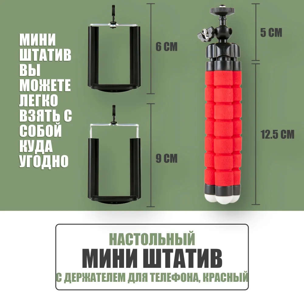Штатив-трипод для смартфона на гибких ножках с держателем для телефона в комплекте (красный)