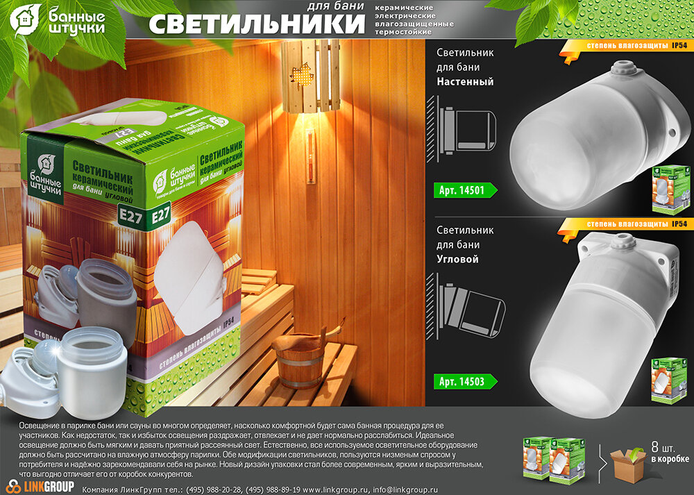 СохранитьСветильник электрический для бани, керамический, угловой, влагозащищенный, термостойкий, d-8,3х13,3 см "Банные штучки" / 8 интересное: