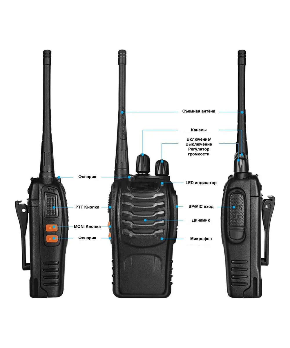 | Дополнительная информация | Активация голосом, LED-фонарик, крепление на пояс, гарнитура, 2 рации |