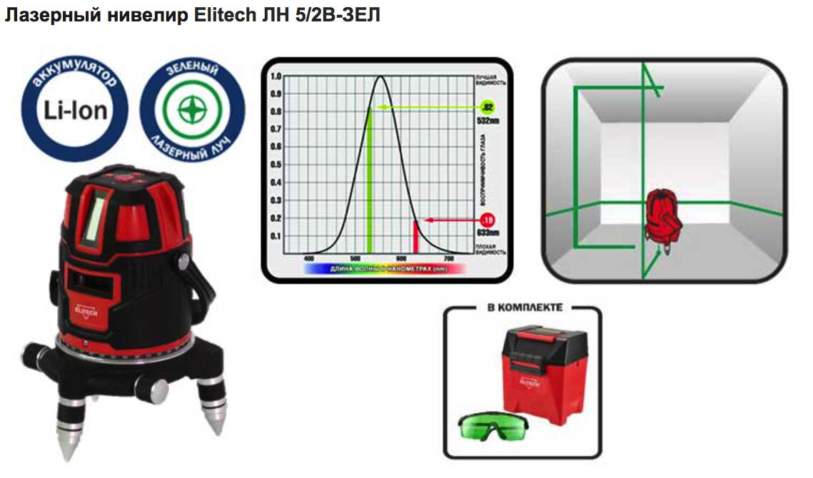 Нивелир лазерный ЛН 5/2В-ЗЕЛ ELITECH интересное:
