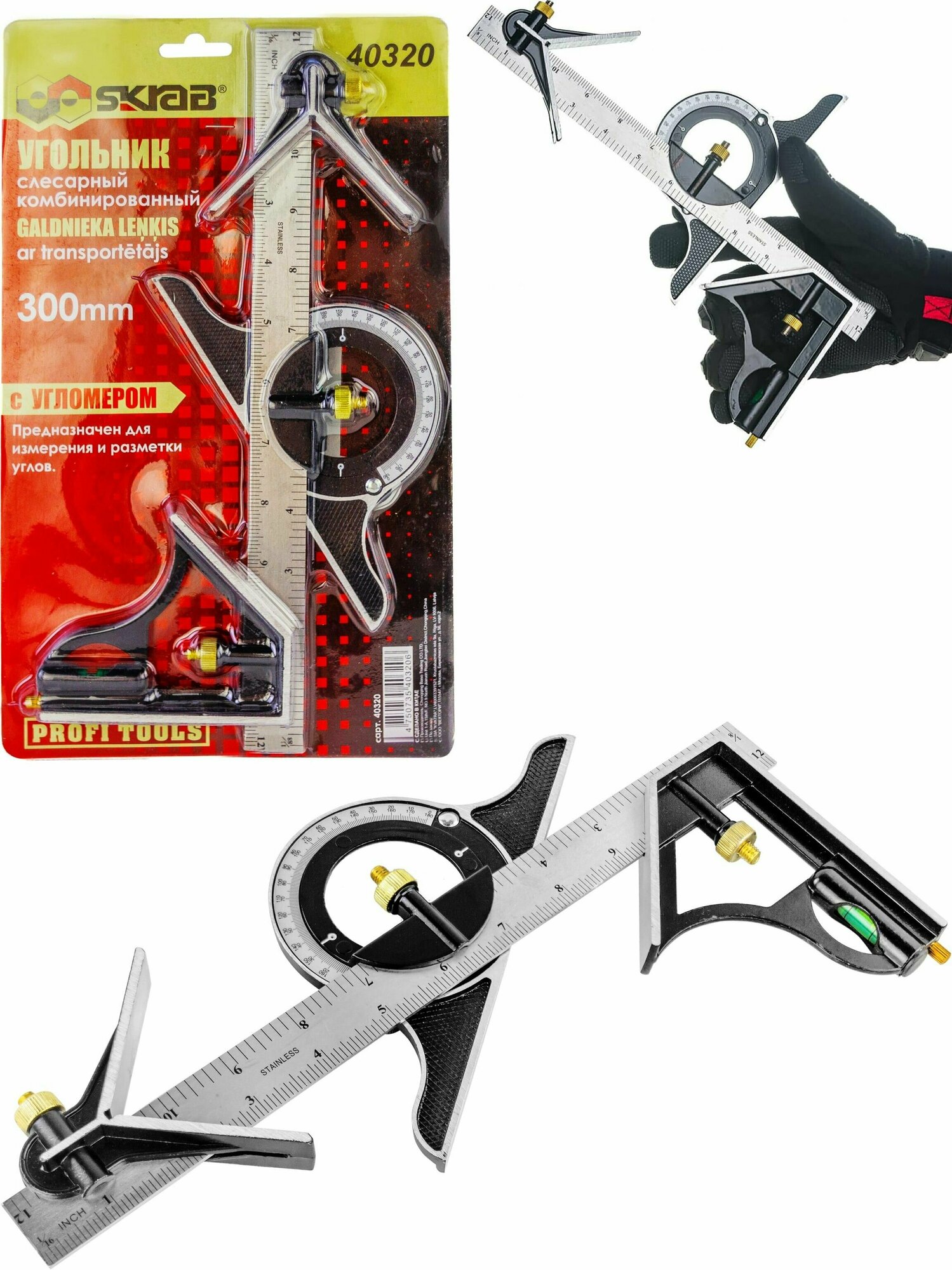 Угольник комбинированный Skrab 40320 слесарный, с угломером 300 мм.