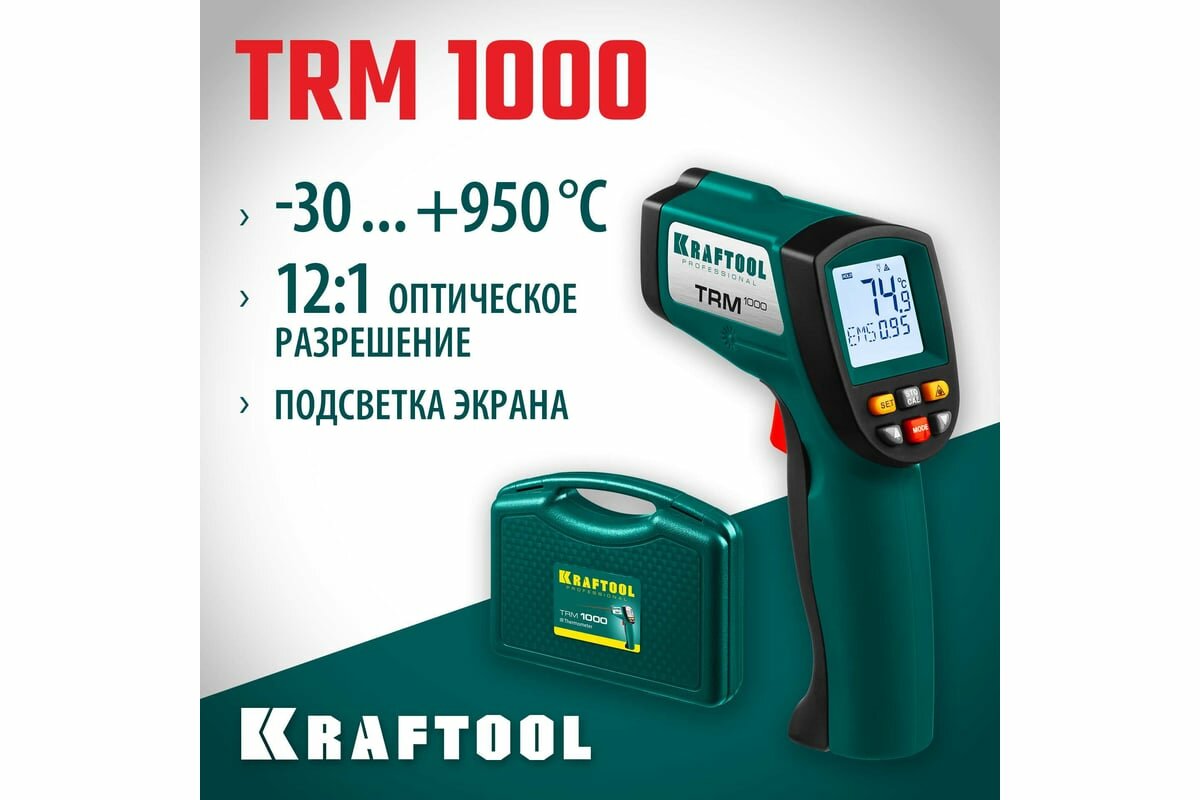 KRAFTOOL Пирометр инфракрасный, -50°С +950°С, TRM-1000, KRAFTOOL ( 45703-950 )