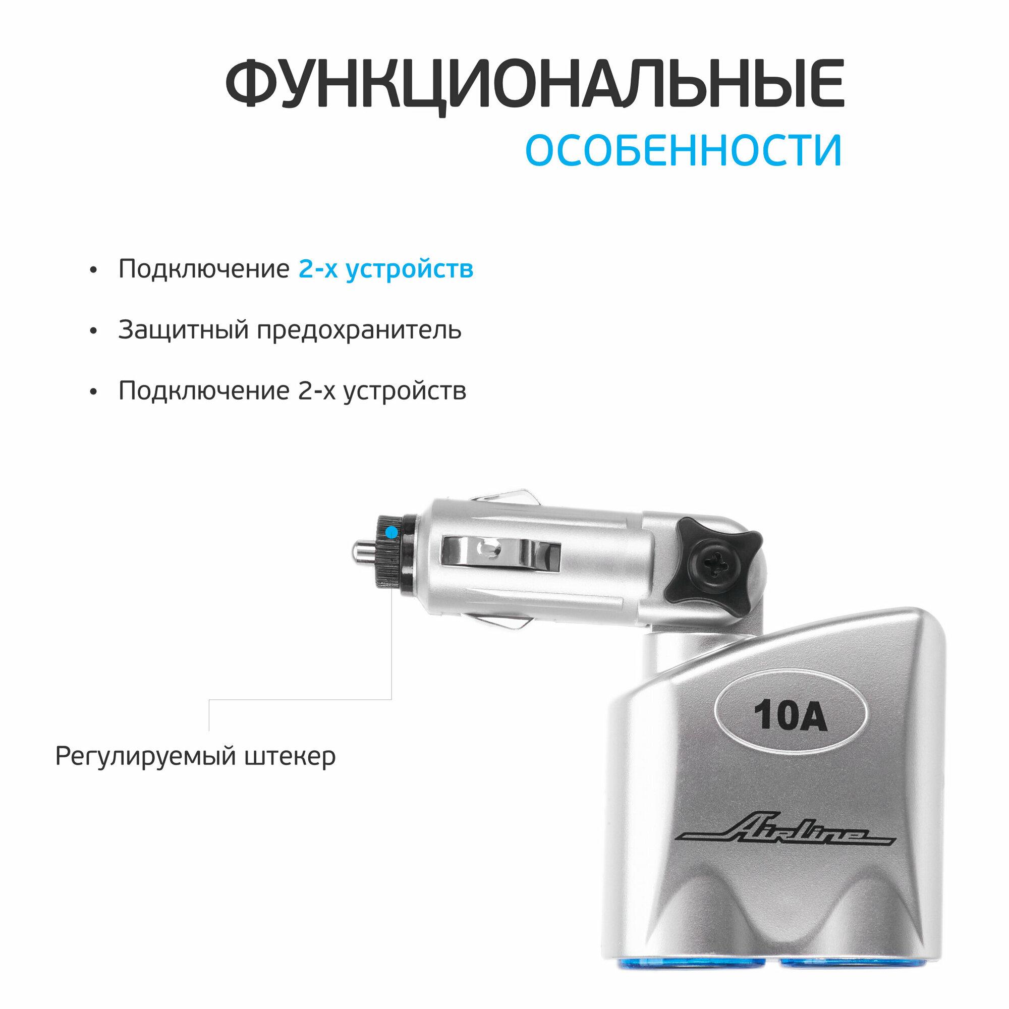 Разветвитель розетки для прикуривателя на 2 выхода airline 10а