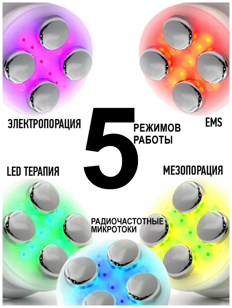| Принцип работы | микротоки / миостимуляция / электропорация / RF-лифтинг / вибрация / светотерапия |