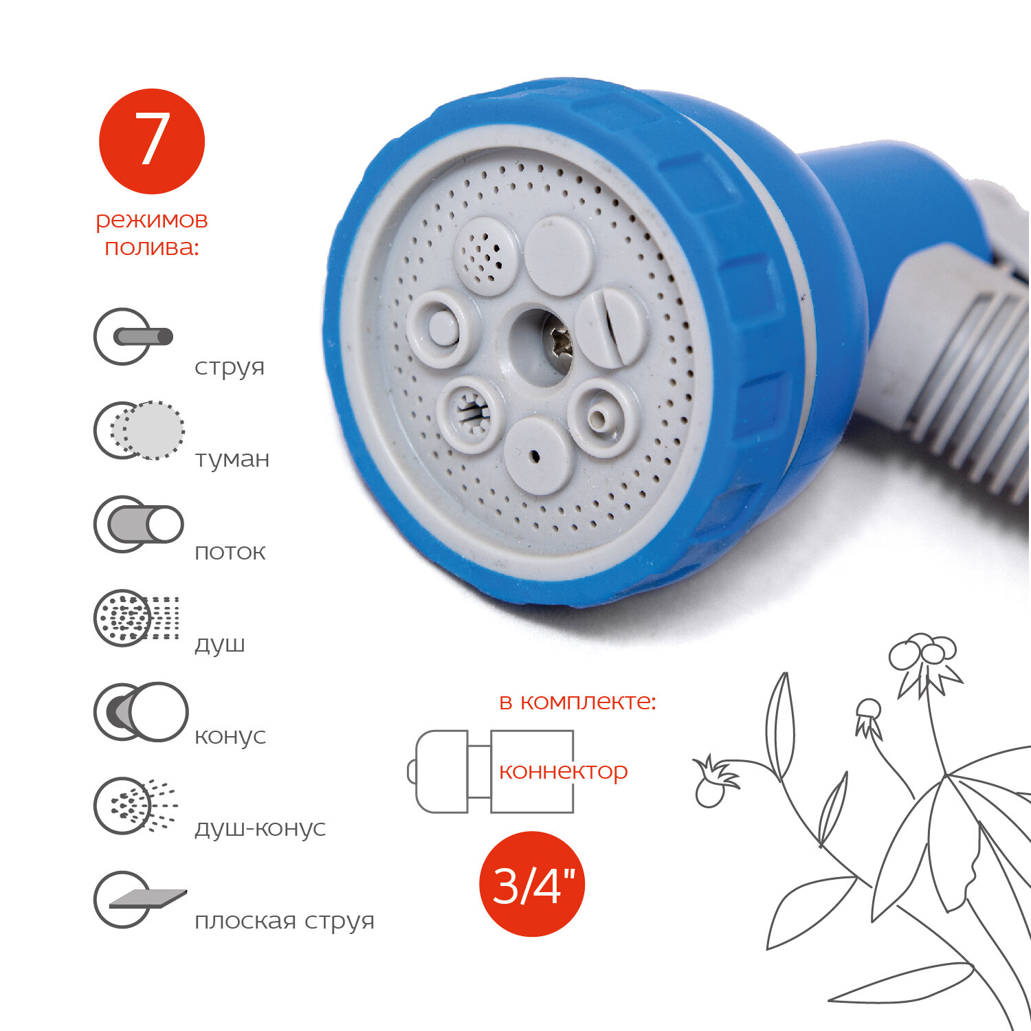 Набор для полива пистолет 7 режимов + коннектор 3/4 FRUT, 402151