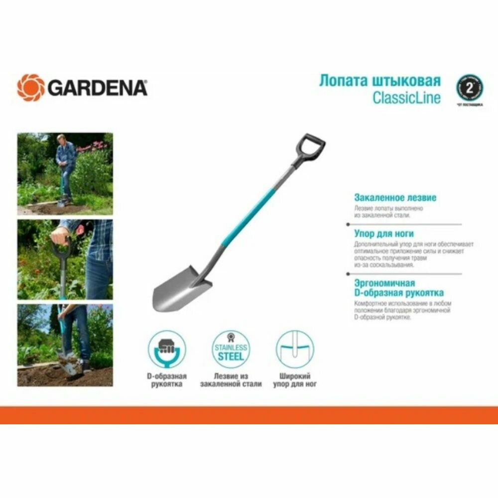 Лопата штыковая Gardena ClassicLine, нержавеющая сталь, 19.3 см